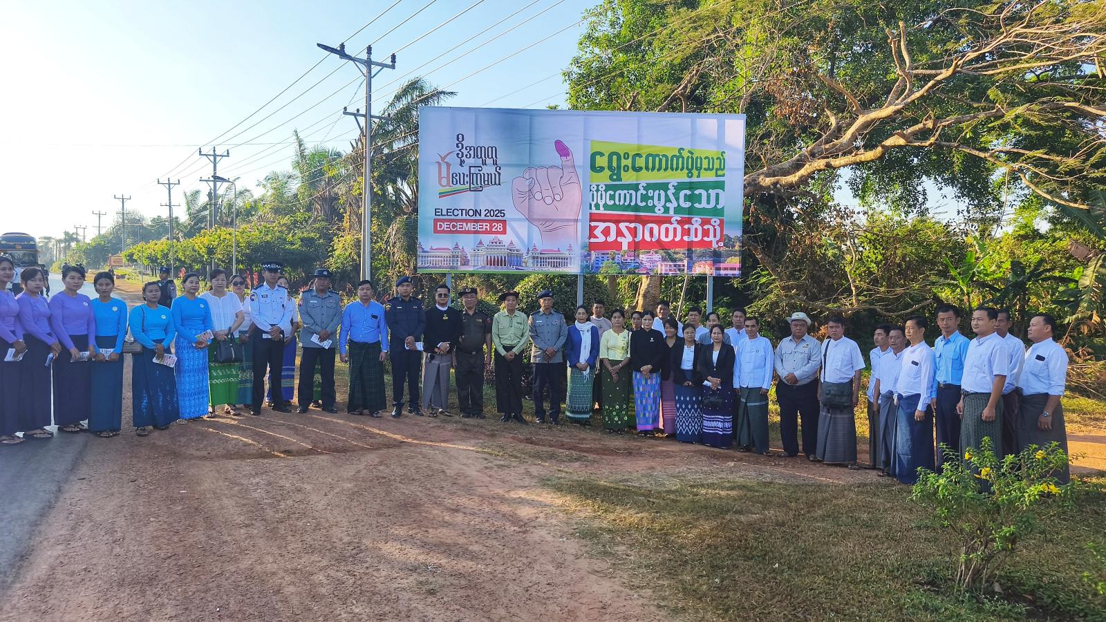မွန်ပြည်နယ်၊ မုဒုံမြို့တွင် “ဒို့အတူတူ မဲပေးကြမယ်” မြေစိုက်ပိုစတာစိုက်ထူခြင်းနှင့် လက်ကမ်းစာစောင်များဖြန့်ဝေခြင်းကို ယနေ့နံနက် ၇ နာရီက မြို့အဝင်ဆိုင်းဘုတ်၊ ရွှေဟင်္သာစျေးရှေ့၊ ကန်ကြီးဘုရားရှေ့နှင့် ကမာဝက်မြို့နေရာလေးနေရာ၌ ဆောင်ရွက်သည်။