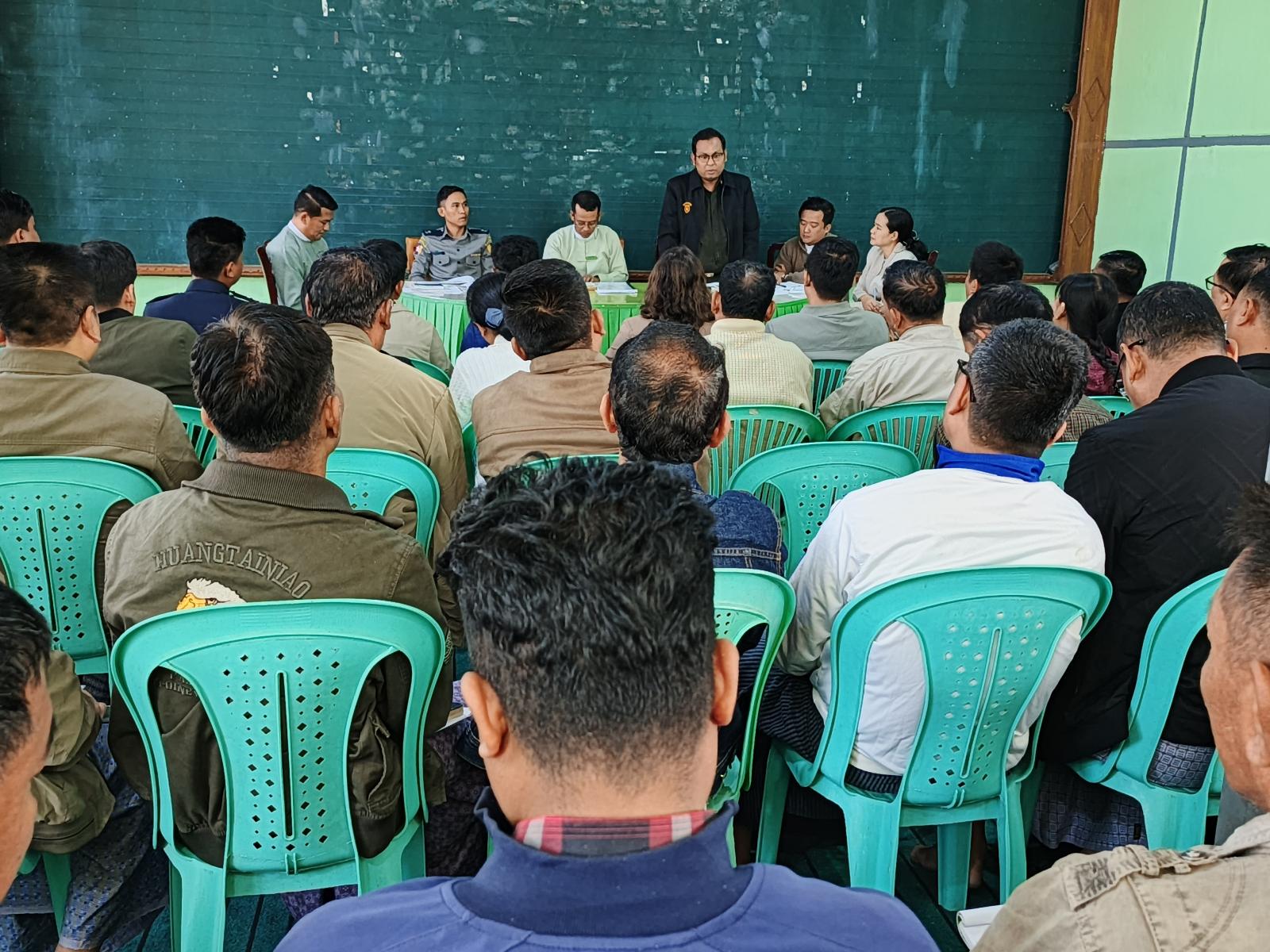 ဦးစွာ လုပ်ငန်းညှိနှုင်းအစည်းအဝေးကို မြို့နယ်စီမံခန့်ခွဲရေးနှင့်အုပ်ချုပ်ရေးကော်မတီဥက္ကဋ္ဌ ဦးမောင်မောင်က အဖွင့်အမှာစကား ပြောကြားရာတွင် ဌာနဆိုင်ရာများနှင့် မဲရုံအလိုက် တာဝန်ပေးအပ်ထားသော မိမိဌာနမှ ဝန်ထမ်းများအား သေချာစွာ မှာကြားဆောင်ရွက်ထားရန် လိုအပ်ကြောင်း၊ မြို့နယ်ရွေးကောက်ပွဲကော်မရှင်အဖွဲ့ခွဲ အတွင်းရေးမှူး ဦးရဲမင်းလွင်က ရွေးကောက်ပွဲဆိုင်ရာ ကိစ္စရပ်များကိုလည်းကောင်း၊ လူဝင်မှုကြီးကြပ်ရေးနှင့် ပြည်သူ့အင်အားဝန်ကြီးဌာန မြို့နယ်ဦးစီးမှူး ဦးကောင်းမြတ်ကျော်က နိုင်ငံသားများ မဲပေးခွင့်အခွင့်ရေးမဆုံးရှုံးစေရေးအတွက် မြို့နယ်အဆင့် ဌာနဆိုင်ရာဝန်ထမ်းများနှင့် မြို့နယ်အတွင်းရှိ ပြည်သူများအား နိုင်ငံသားစိစစ်ရေး ကတ်ပြား ပျောက်ဆုံး/ပျက်စီးမှုများအပေါ် ကွင်းဆင်းဆောင်ရွက်ပေးမည်ဖြစ်၍ စာရင်းပို့ပေးစေလိုကြောင်း၊ မြို့နယ်ရဲတပ်ဖွဲ့မှူး ရဲမှူး စည်သူကျော်က လုံခြုံရေးဆိုင်ရာကိစ္စရပ်များကိုလည်းကောင်း အသီသီးဆွေးနွေးပြောကြားခဲ့ပြီး တက်ရောက်လာသည့် မြို့နယ်အဆင့်ဌာနဆိုင်ရာ အကြီးအကဲများနှင့် ရပ်ကွက်အုပ်ချုပ်ရေးမှူးများက သိလိုသည်များကို အပြန်အလှန် မေးမြန်းဆောင်ရွက်ခဲ့ကြောင်း သိရသည်။