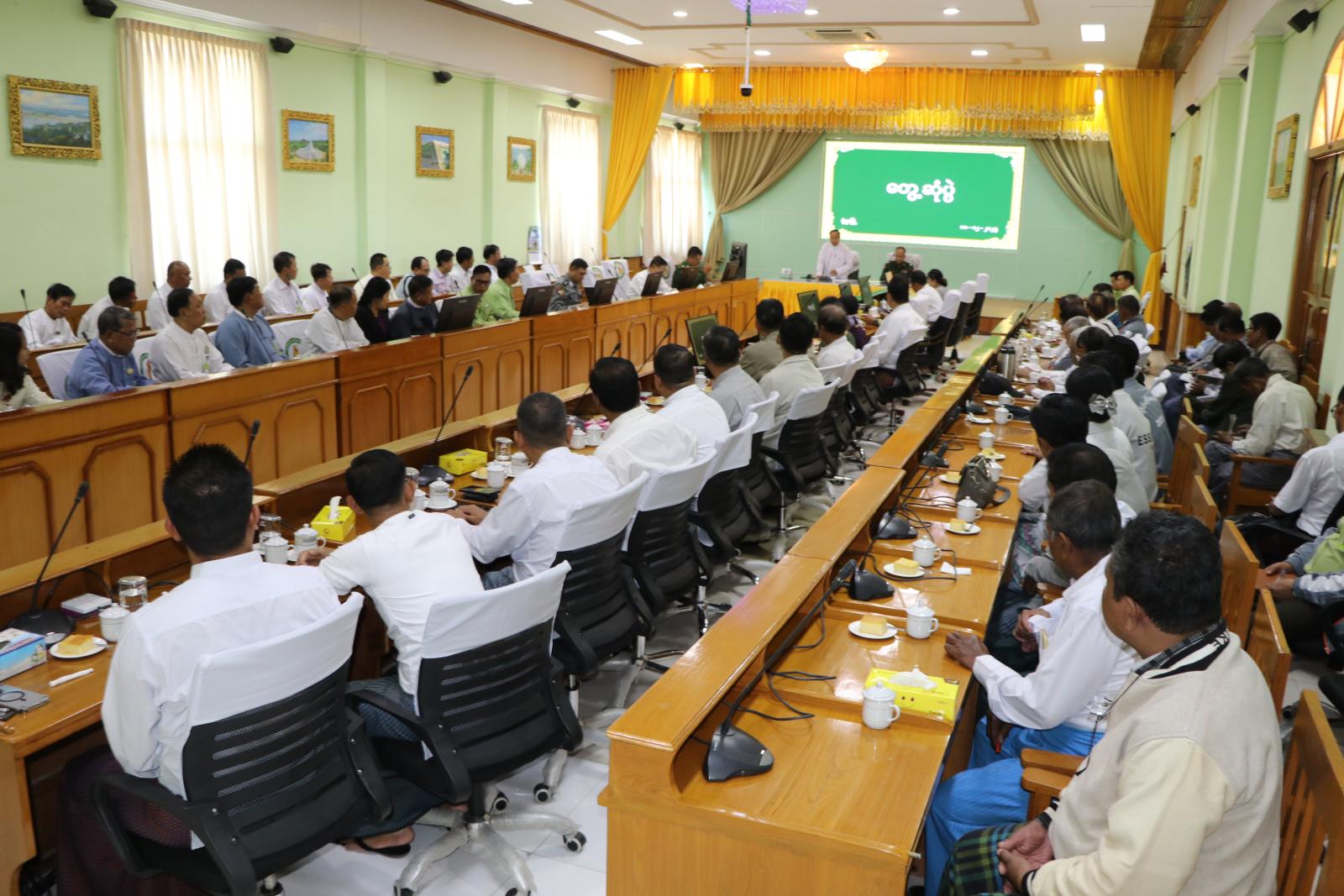 ထို့နောက် တိုင်းဒေသကြီး အစိုးရအဖွဲ့ဝင်များနှင့် တိုင်းဒေသကြီးအဆင့် ဌာနဆိုင်ရာများက မိမိတို့ဌာနများအလိုက် ဖြည့်ဆည်းပေါင်းစပ် ဆောင်ရွက်ပေးသွားမည့် အခြေအနေများအား ရှင်းလင်းပြောကြားကြသည်။ ယင်းနောက် တိုင်းဒေသကြီး ဝန်ကြီးချုပ်က အစည်းအဝေးသို့ တက်ရောက်လာကြ သူများ၏ ဆွေးနွေးတင်ပြချက်များအပေါ် လိုအပ်သည်များကို တာဝန်ရှိသူများနှင့် ဖြည့်ဆည်းပေါင်းစပ်ဆောင်ရွက်ပေးပြီး နိဂုံးချုပ်အမှာစကား ပြောကြားသည်။