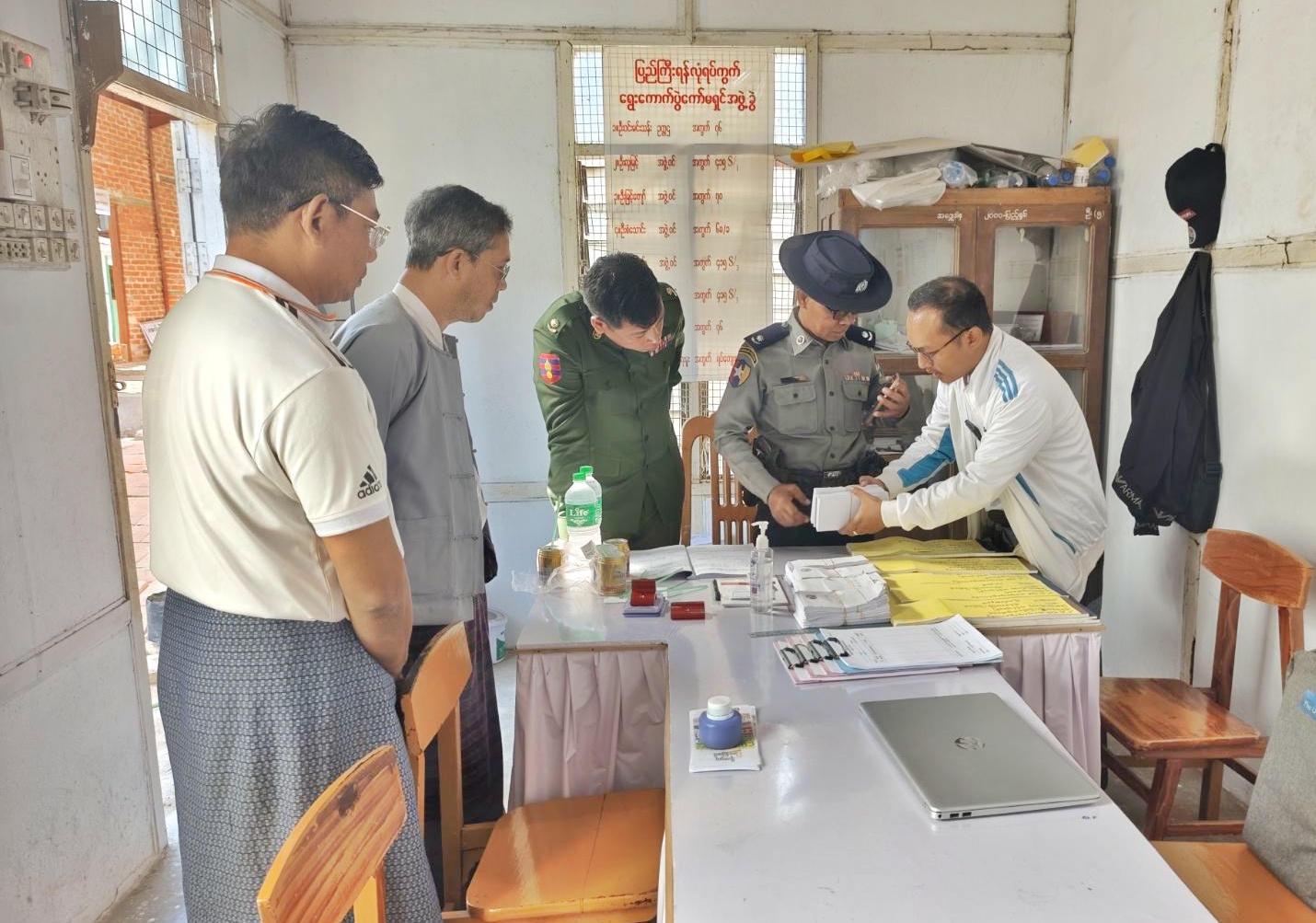 အဆိုပါကြိုတင်ဆန္ဒမဲပေးကြရာတွင် ပြည်သူနှင့်နိုင်ငံဝန်ထမ်း(၂၅၈)ဦးတို့က သတ်မှတ်နေရာများ၌မဲပေးကြရာ မြို့နယ်စီမံခန့်ခွဲရေးနှင့်အုပ်ချုပ်ရေးကော်မတီအဖွဲ့ဝင် ဗိုလ်မှူး ဝင်းမျိုးထွန်း၊ အတွင်းရေးမှူး ရဲမှူးလှမိုး(မြို့နယ်ရဲတပ်ဖွဲ့မှူး)နှင့် အဖွဲ့ဝင်များ၊ မြို့နယ်ရွေးကောက်ပွဲကော်မရှင်အဖွဲ့ခွဲအတွင်းရေးမှူး ဦးဇော်ထက်နှင့် မြို့နယ်ကော်မရှင်အဖွဲ့ဝင်များက အဖွဲ့နှစ်ဖွဲ့ခွဲကာ မြို့နယ်အတွင်းရှိ ရပ်ကွက်ရွေးကောက်ပွဲကော်မရှင်ရုံးများ၌ ဒီဇင်ဘာ ၂၈ ရက် ရွေးကောက်ပွဲကျင်းပသည့်နေ့နှင့် ယင်းနေ့မတိုင်မီ နိုင်ငံတော်တာဝန်များဖြင့် ခရီးဝေးသွားလာကြသည့် ဝန်ထမ်းများကြိုတင်ဆန္ဒမဲပေးနေမှုများအား လိုက်လံကြည့်ရှုကာ မဲရုံစောင့်တာဝန်ကျလုံခြုံရေးတပ်ဖွဲ့ဝင်များအနေဖြင့် လုံခြုံရေးအထူးဂရုပြုဆောင်ရွက်ရေးမှာကြားခဲ့ကြောင်း သိရသည်။