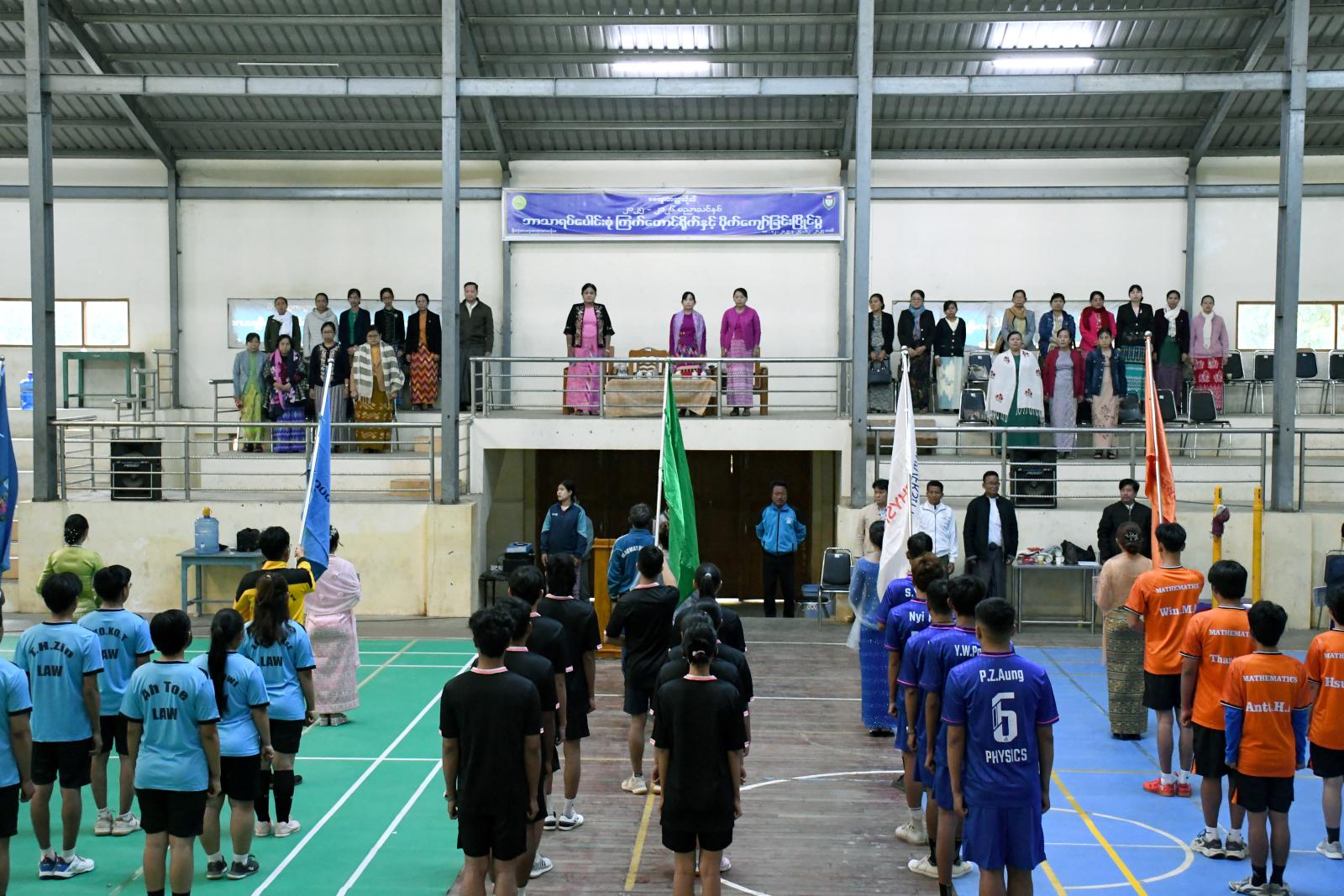 ထို့နောက် ပြိုင်ပွဲဝင်အားကစားသများက အားကစားသစ္စာအဓိဋ္ဌာန်ရွတ်ဆိုပြီး ကြက်တောင်ရိုက် ပြိုင်ပွဲအမျိုးသမီးပထမပွဲစဉ်အဖြစ် အင်္ဂလိပ်စာနှင့် ဓာတုဗေဒအသင်း၊ အမျိုးသားကြက်တောင်ရိုက်ပွဲစဉ်အဖြစ် ရုက္ခဗေဒနှင့် ဓာတုဗေဒအသင်းတို့ ယှဉ်ပြိုင်ကစားနေမှုများကို ပါမောက္ခချုပ် ဒေါက်တာ ခင်ကေခိုင်၊ ဒုတိယပါမောက္ခချုပ်များ၊ ပါမောက္ခ(ဌာနမှူး)များနှင့် ကျောင်းသား၊ ကျောင်းသူများက ကြည့်ရှုအားပေးကြသည်။