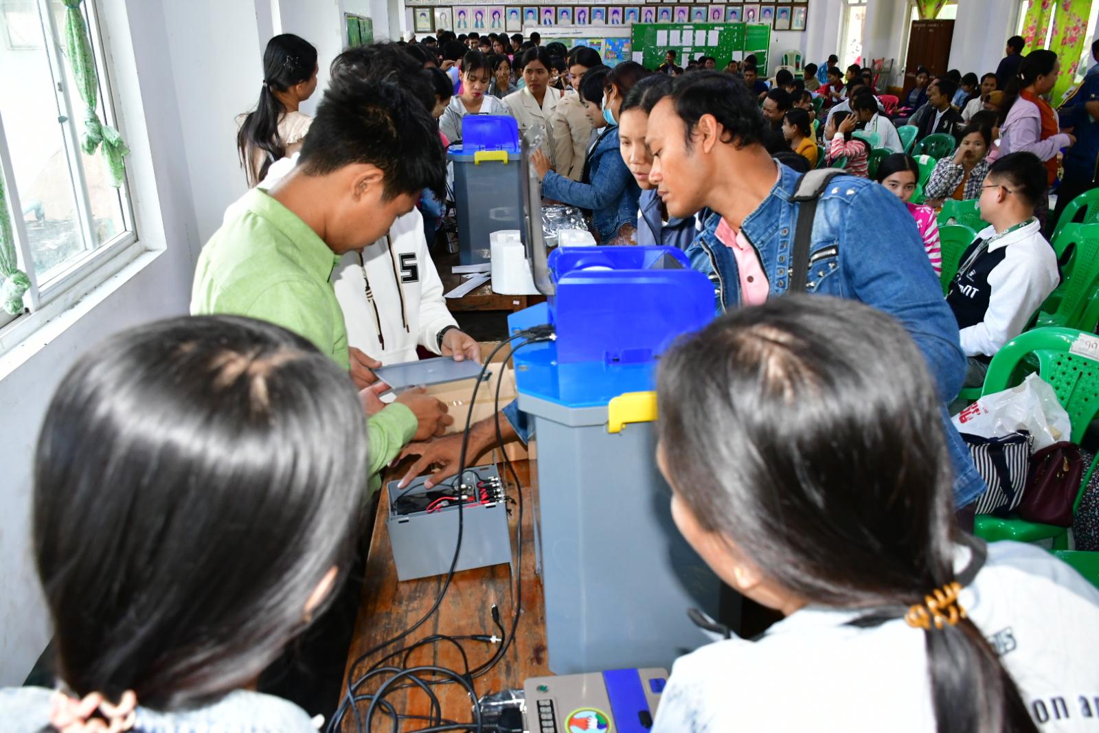 ပဲခူးတိုင်းဒေသကြီး ပြည်မြို့နယ် ရွေးကောက်ပွဲကော်မရှင်အဖွဲ့ခွဲကကြီးမှူး၍ ယနေ့နံနက်ပိုင်းက ပြည်မြို့ အမှတ်(၁)အခြေခံပညာအထက်တန်းကျောင်း၌ မြန်မာအီလက်ထရောနစ်မဲပေးစက်(MEVM) လက်တွေ့ကိုင်တွယ်အသုံးပြုနည်း မွမ်းမံသင်တန်း ဖွင့်လှစ်ခဲ့သည်။