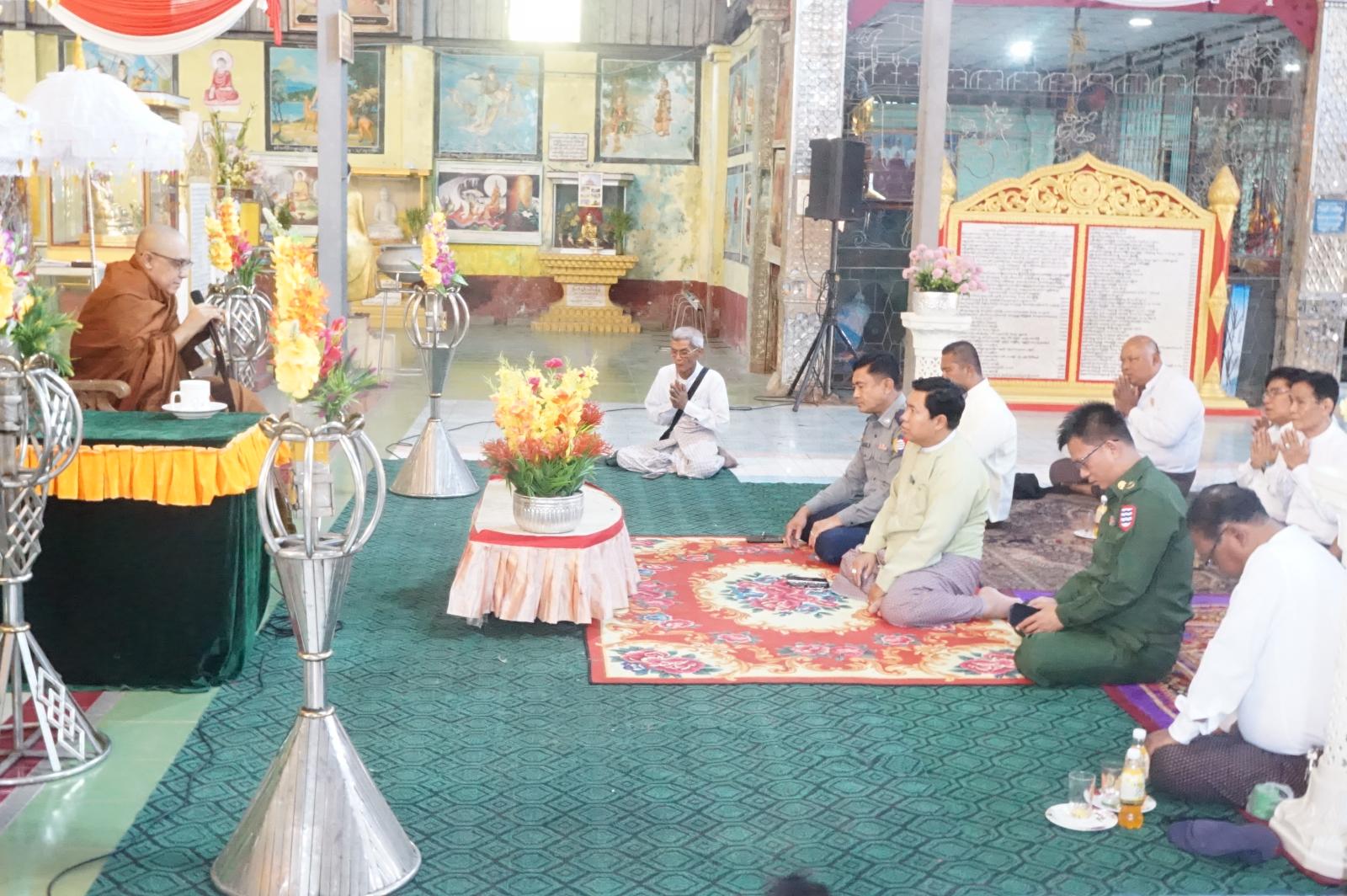 ရှေးဦးစွာ ဘုရားကြီးတိုက်ကျောင်း၊ ကမ္မဌာနာစရိယဆရာတော် ဘဒ္ဒန္တဩဘာသထံမှ မြို့နယ် စီမံအုပ်ချုပ်ရေးအဖွဲ့ဥက္ကဋ္ဌ ဦးခင်မောင်ဦးနှင့် အဖွဲ့ဝင်များ၊ ဌာနဆိုင်ရာအကြီးအကဲများ၊ ပူဇော်ပွဲကျင်းပရေးကော်မတီဥက္ကဋ္ဌနှင့် အဖွဲ့ဝင်များ၊ ရပ်ကွက်အုပ်ချုပ်ရေးမှူးများ၊ အလှူရှင်များက သရဏဂုံသီလ ဆောက်တည်ခံယူကြပြီးနောက် ပြည်လုံးချမ်းသာ နှစ်ကျိပ်ရှစ်ဆူမြတ်စွာဘုရားကြီး၏ (၁၁၈)ကြိမ်မြောက် ဗုဒ္ဓပူဇနိယပွဲတော် အခမ်းအနားအား ဖဲကြိုးဖြတ်၍ ဖွင့်လှစ်ပေးခဲ့သည်။