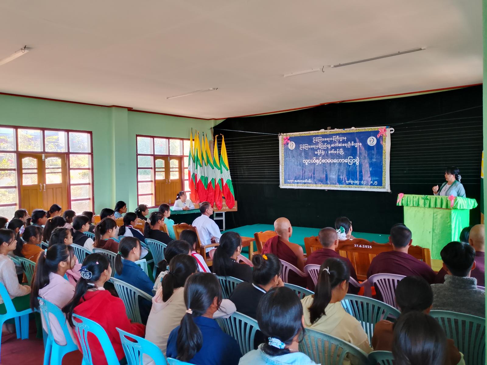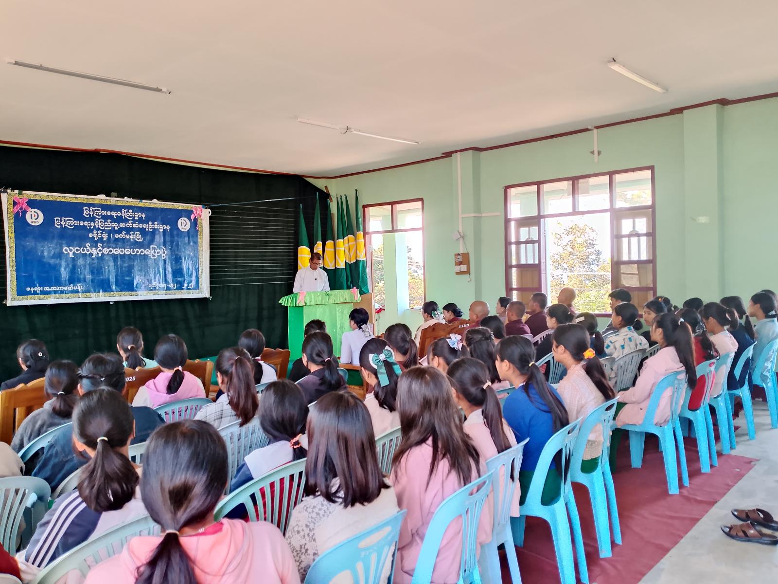 အဆိုပါ အသိပညာပေးဟောပြောပွဲတွင် မက်မန်းခရိုင် ပြန်ကြားရေးနှင့်ပြည်သူ့ဆက်ဆံရေးဦးစီးဌာနမှ လက်ထောက်ညွှန်ကြားရေးမှူး ဦးသိန်းနိုင်က “ကျောင်းသား/ကျောင်းသူ လူငယ်များ အနေဖြင့် ကျောင်းစာများအပြင် ပြင်ပစာပေ ဗဟုသုတများ ရရှိစေရန်အတွက် စာကြည့်တိုက်များတွင် စာအုပ် စာစောင်များ ငှားရမ်းဖတ်ရှုလေ့လာသင်ကြောင်း၊ ကျောင်းသား၊ ကျောင်းသူလူငယ်များ အနေဖြင့် စာပေ၏အရေးပါပုံကို သိရှိနိုင်စေရန် “လူငယ်နှင့်စာပေ” ခေါင်းစဉ်ဖြင့် အကျယ်တစ်ဝန်း ဟောပြောဆွေးနွေးခဲ့သည်။ ဆက်လက်ပြီး ကျောင်းအုပ်ဆရာမကြီး ဒေါ်အိအိအောင်က လူငယ်နှင့်စာပေ အသိပညာပေးဟောပြေပွဲ လာရောက်ပြုလုပ်ပေးရခြင်းနှင့် ပတ်သက်၍ ကျေးဇူးတင်စကား ပြောကြားခဲ့သည်။