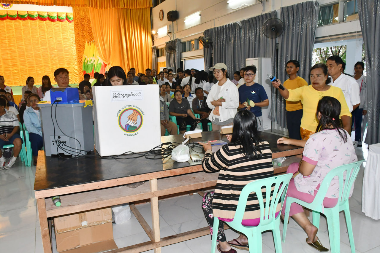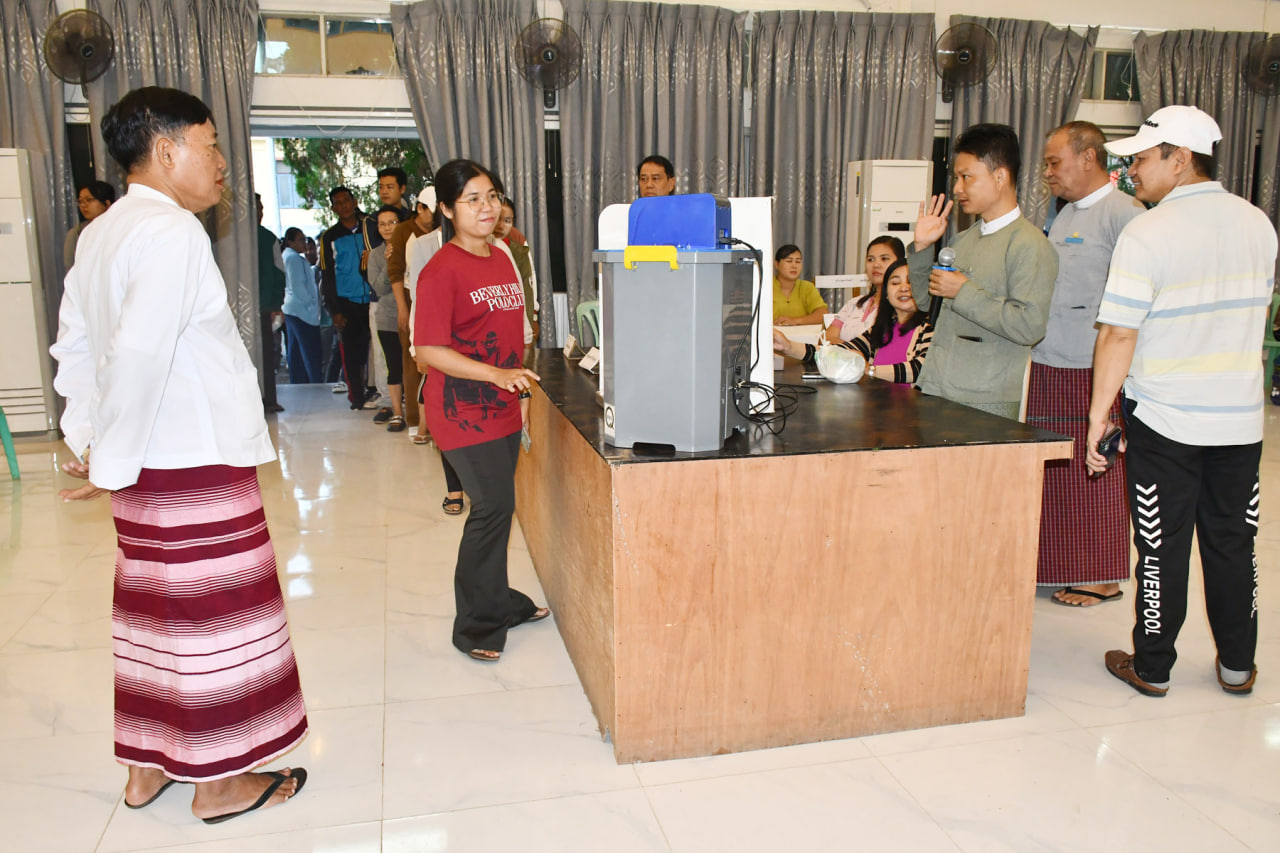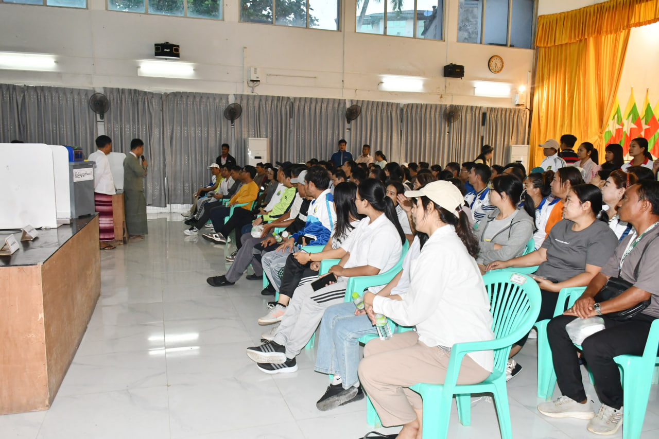 တနင်္သာရီတိုင်းဒေသကြီး၊ ကော့သောင်းခရိုင်၊ ကော့သောင်းမြို့တွင် ၂၀၂၅ ခုနှစ်၊ ပါတီစုံဒီမိုကရေစီ အထွေထွေရွေးကောက်ပွဲတွင် ဆန္ဒမဲပေးမည့် ဌာနဆိုင်ရာဝန်ထမ်းများအား မြန်မာအီလက်ထရောနစ်မဲပေးစက် (MEVM) သရုပ်ပြရှင်းလင်းခြင်းနှင့် စမ်းသပ်မဲပေးခြင်းကို ယနေ့နံနက်ပိုင်းက ကော့သောင်းမြို့ မဉ္ဇူသကခန်းမတွင် ဆောင်ရွက်ခဲ့သည်။