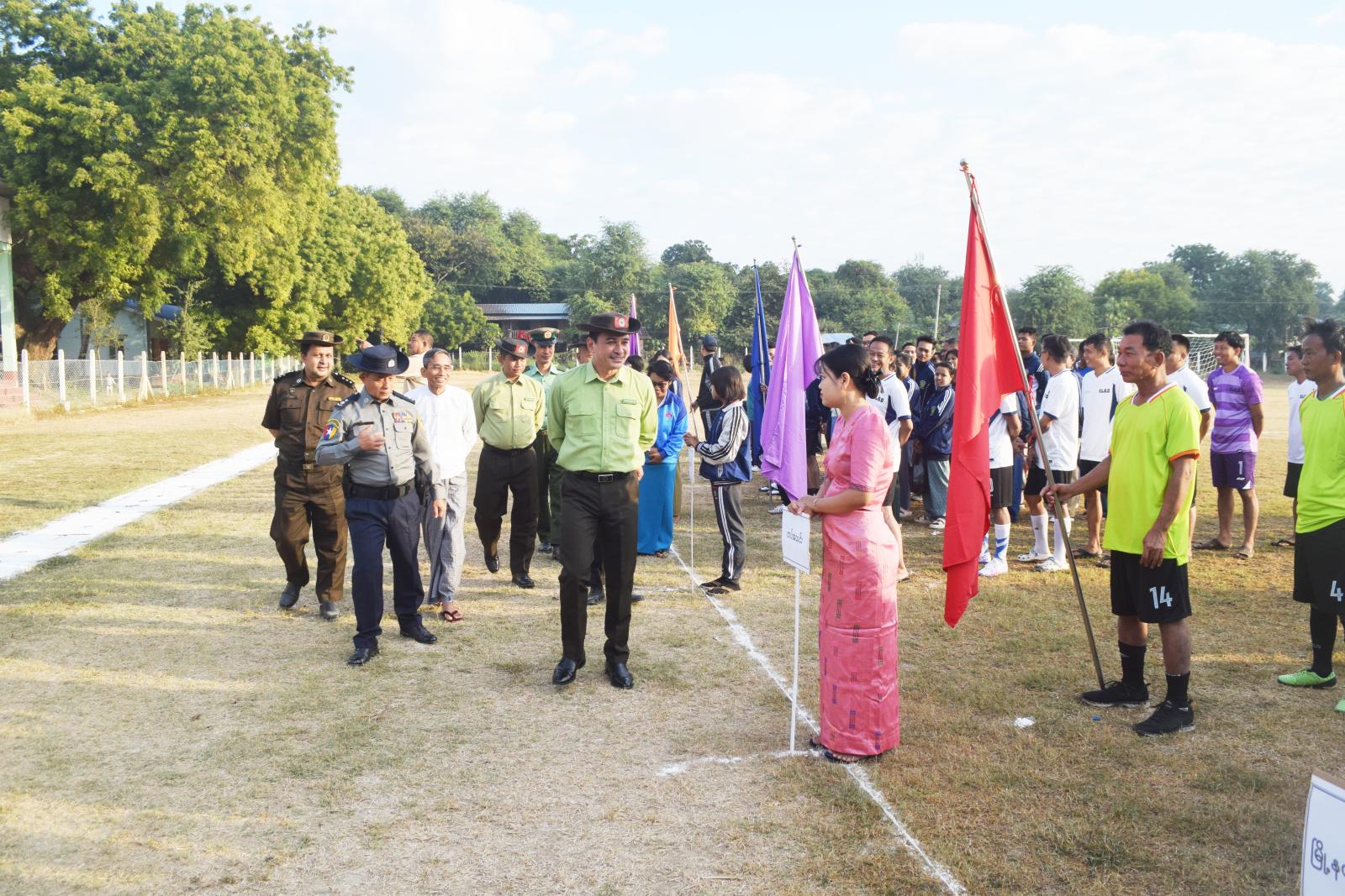 ကွင်းဖွင့်ပွဲအခမ်းအနားတွင် တံတားဦးခရိုင် စီမံခန့်ခွဲရေးနှင့်အုပ်ချုပ်ရေးကော်မတီဥက္ကဋ္ဌ ဦးအောင်ချမ်းငြိမ်းအား အားကစားသမားများက အလေးပြုကြ၍ စစ်ကြောင်းမှူးမှ ဦးဆောင်၍ အားကစားအဓိဌာန ရွတ်ဆိုကြသည်။ ထို့နောက် ခရိုင်စီမံခန့်ခွဲရေးနှင့် အုပ်ချုပ်ရေးကော်မတီ ဥက္ကဋ္ဌက အမှာစကားပြောကြားပြီး ခရိုင်စီမံခန့်ခွဲရေးနှင့် အုပ်ချုပ်ရေးကော်မတီဥက္ကဋ္ဌနှင့်တာဝန်ရှိသူများမှ ပြိုင်ပွဲဝင်အသင်းများအား လိုက်လံနှုတ်ဆက်ကြသည်။ ထို့နောက်ဌာနပေါင်းစုံ အမျိုးသား ဖူဆယ်ဘောလုံးကွင်းဖွင့်ပွဲအဖြစ် ပညာရေးအသင်းနှင့် ကျန်းမာရေးအသင်းတို့ ယှဉ်ပြိုင်ကြမည်ဖြစ်ရာ ခရိုင်စီမံခန့်ခွဲရေးနှင့် အုပ်ချုပ်ရေးကော်မတီဥက္ကဋ္ဌမှ ကွင်းအတွင်း ဘောလုံကန်၍ ဖွင့်လှစ်ပေးသည်။