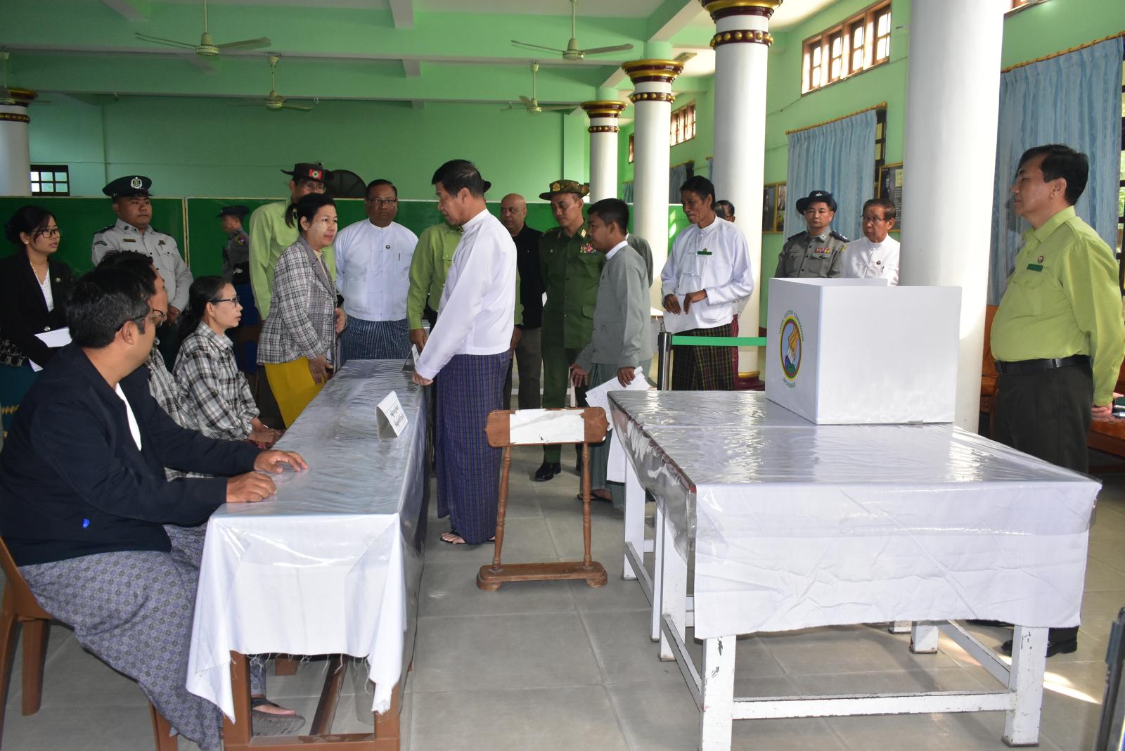 ချမ်းအေးသာစံမြို့နယ်တွင် တတိယအကြိမ် မဲစာရင်းများထုတ်ပြန်ကြေငြာမှူများနှင့် မဲရုံပြင်ဆင်ထားရှိမှုများအား ဝန်ကြီးချုပ် ဦးမျိုးအောင်မှ လိုက်လံကြည့်ရှု