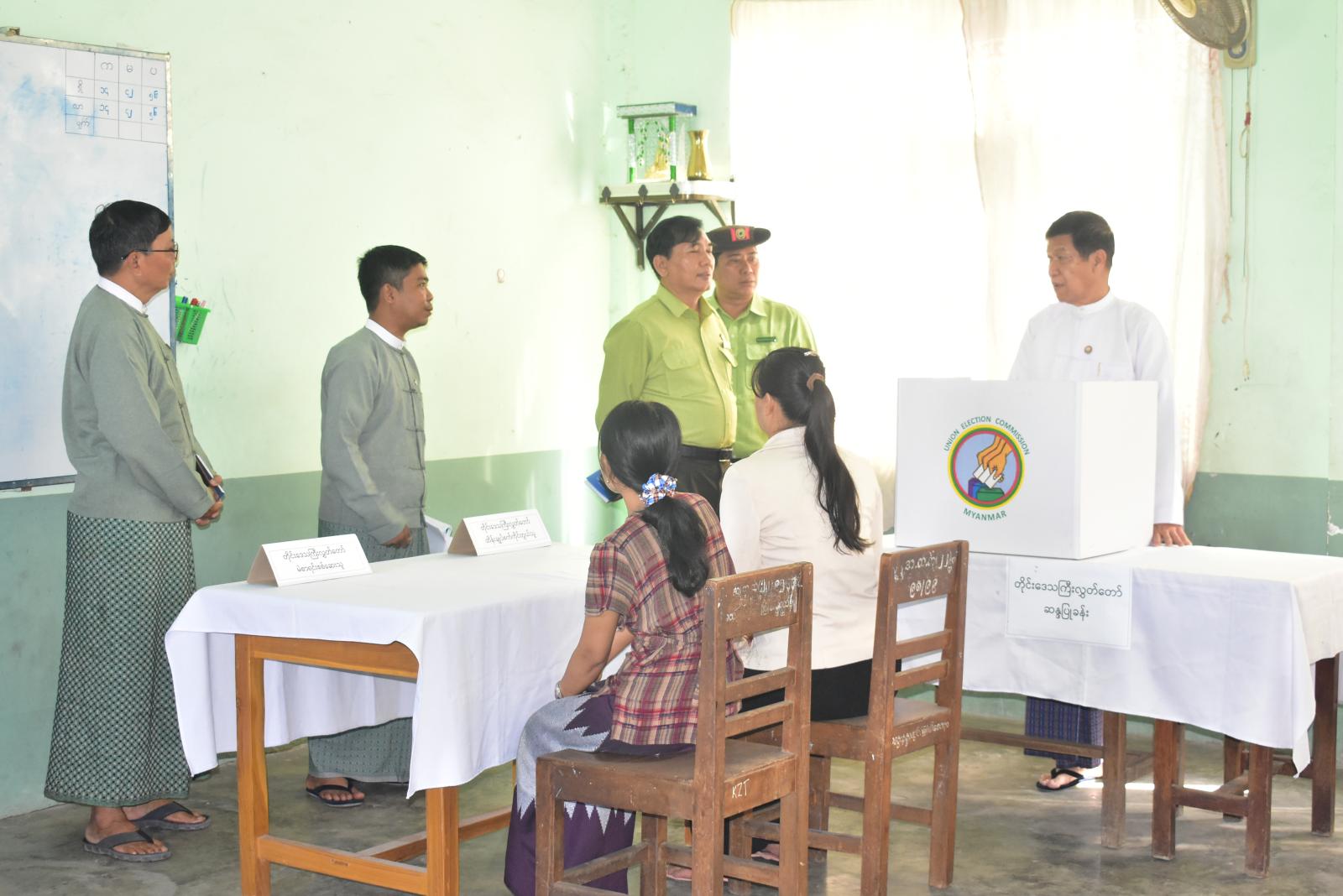 ဝန်ကြီးချုပ်ဦးမျိုးအောင်နှင့်အဖွဲ့ဝင်များက  မဲရုံအတွင်း ပြင်ဆင်ထားရှိမှုများ၊ မဲရုံများ၏ လုံခြုံရေးအခြေအနေများထားရှိစေခြင်း၊ မဲရုံများအတွင်း အလင်းရောင်ကောင်းစွာရရှိစေရေး၊ မဲရုံမှူးများနှင့် တာဝန်ရှိသူများ၏ လုပ်ငန်းတာဝန်များ ဆောင်ရွက်ထားရှိမှုများအား လိုက်လံကြည့်ရှု စစ်ဆေးခဲ့ကြသည်။