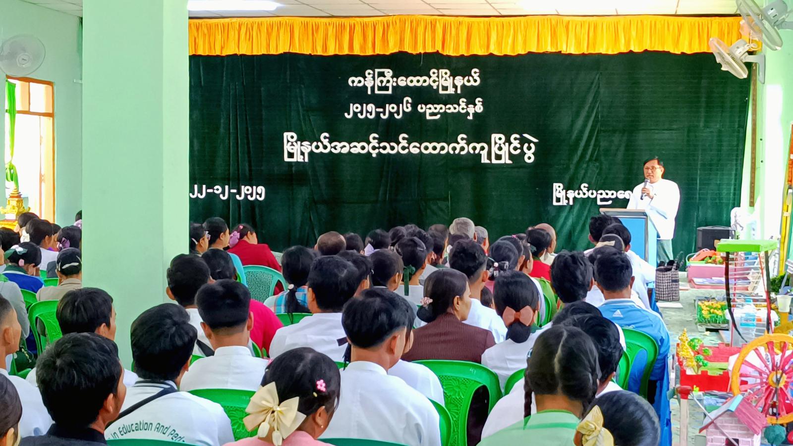ဧရာဝတီတိုင်းဒေသကြီး၊ ပုသိမ်ခရိုင်၊ ကန်ကြီးထောင့်မြို့နယ်၌ မြို့နယ်ပညာရေးဦးစီးဌာနမှကြီးမှူး၍ မြို့နယ်အဆင့်သင်ထောက်ကူပြိုင်ပွဲအခမ်းအနားကို ယမန်နေ့နံနက်ပိုင်းက မြို့နယ်ပညာရေးမှူးရုံး၌ကျင်းပရာ ခရိုင်ပညာရေးမှူး ဆရာကြီးဦးဘုန်းဇော်၊ မြို့နယ်စီမံခန့်ခွဲရေးနှင့်အုပ်ချုပ်ရေးကော်မတီအဖွဲ့ဝင် ဗိုလ်မှူးရဲနိုင်လွင်နှင့် အဖွဲ့ဝင်များ၊ မြို့နယ်ပညာရေးမှူး ဆရာမကြီး ဒေါ်ခင်သက်နိုင်၊ ဌာနဆိုင်ရာအကြီးအကဲများ၊ မိခင်နှင့်ကလေးစောင့်ရှောက်ရေးအသင်း၊ အမျိုးသမီးရေးရာအဖွဲ့နှင့် မြို့နယ်အတွင်းရှိ ကျောင်းအုပ် ဆရာကြီး၊ ဆရာမကြီးများ၊ ဆရာ၊ ဆရာမများက တက်ရောက်ခဲ့ကြသည်။