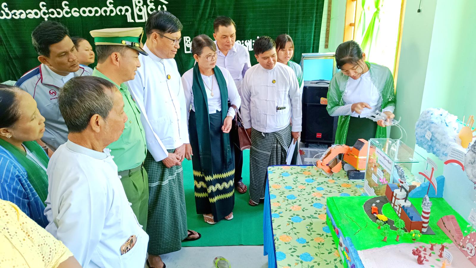 ဆက်လက်၍ တက်ရောက်လာကြသော ခရိုင်ပညာရေးမှူး ဆရာကြီး၊ မြို့နယ်စီမံခန့်ခွဲရေးနှင့် အုပ်ချုပ်ရေးကော်မတီအဖွဲ့ဝင်များ၊ မြို့နယ်ပညာရေးမှူးနှင့် ဌာနဆိုင်ရာအကြီးအကဲများ၊ ဧည့်သည်တော်များက ပြိုင်ပွဲဝင်ရောက်ယှည်ပြိုင်ကြရန် ခင်းကျင်းပြသထားသည့် သင်ထောက်ကူ (မူပုံ/ကားချပ်/သေတ္တာ) များအား လှည့်လည်ကြည့်ရှု့စစ်ဆေးခဲ့ကြသည်။ ကန်ကြီးထောင့်မြို့နယ်ပညာရေးဦးစီးဌာနအနေဖြင့် အဆိုပါပြိုင်ပွဲအား သင်ထောက်ကူပစ္စည်းများ အသုံးချ၍ စနစ်သစ်သင်ကြားနည်းများဖြင့် သင်ကြားပေးရာတွင် ပိုမိုထိရောက်အောင်မြင်စေရန်၊ တတ်မြောက်မှုကို ကြာရှည်ထိန်းနိုင်ရန်နှင့် ကျောင်းသား/သူများမှ သင်ခန်းစာများတွင် စိတ်ပါဝင်စားမှုရှိစေရန်ရည်ရွယ်၍ ကျင်းပရခြင်းဖြစ်ပြီး ဆုပေးပွဲအား မြို့နယ်အဆင့် ပညာရေးစုံညီပွဲတော်တွင် ပေးအပ်ချီးမြှင့်သွားမည်ဖြစ်ကြောင်း သိရသည်။