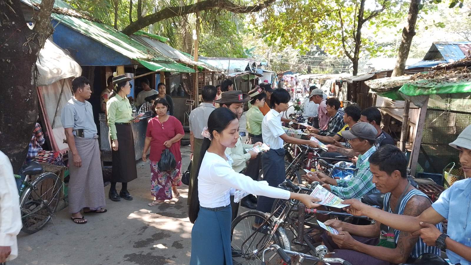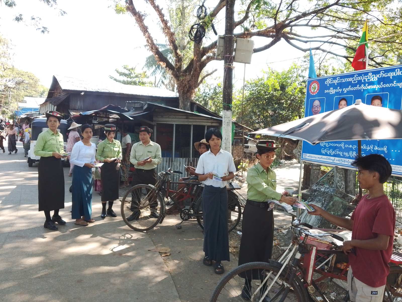 "ရွေးကောက်ပွဲမှသည် ပိုမိုကောင်းမွန်သောအနာဂတ်ဆီသို့" ဆောင်ပုဒ်နှင့်အညီ ဒီမိုကရေစီကို ပြန်လည်ဖော်ဆောင်ဖို့အတွက် ရွေးကောက်ပွဲမှလွဲ၍ အခြားနည်းမရှိပါ၊ ပြည်သူများ လိုလားသည့် ဒီမိုကရေစီနိုင်ငံတော်ကို ရွေးကောက်ပွဲဖြင့်သာ ဖော်ဆောင်နိုင်ပါသည်၊ ဒီမိုကရေစီခိုင်မြဲဖို့ မဲရုံသွားပြီး မဲပေးကြပါစို့၊ နိုင်ငံဖွံ့ဖြိုးတိုးတက်ဖို့ ဦးဆောင်နိုင်သူရွေးချယ်ကြပါစို့" စသည့်အကြောင်းအရာများ ပါဝင်သော လက်ကမ်းစာစောင်များအား မြို့နယ်အထွေထွေအုပ်ချုပ်ရေးဦးစီးဌာနမှ ဝန်ထမ်းများ၊ မြို့နယ်ပြန်ကြားရေးနှင့်ပြည်သူ့ဆက်ဆံရေးဦးစီးဌာနမှ ဝန်ထမ်းများ၊ ရပ်ကွက် အုပ်ချုပ်ရေးမှူးများက ပြည်သူများလက်ဝယ်အရောက် ဖြန့်ဝေပေးခဲ့သည်။