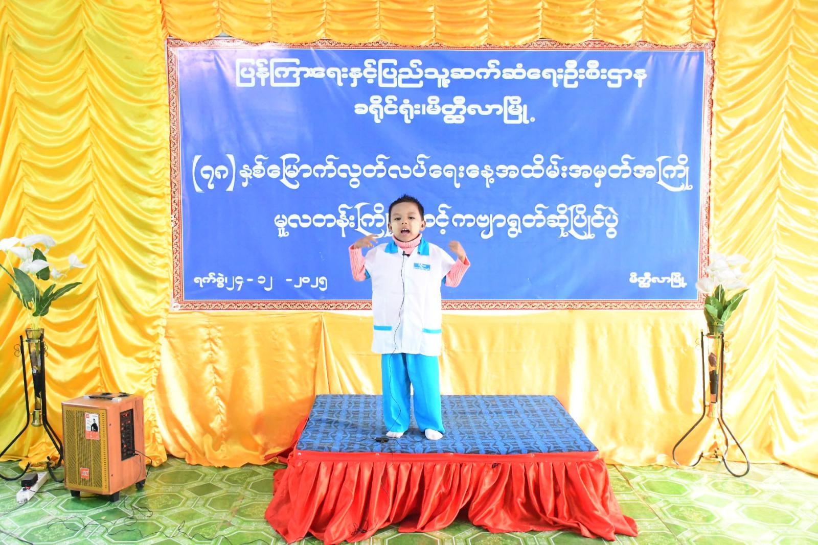 မန္တလေးတိုင်းဒေသကြီး မိတ္ထီလာမြို့ လူထုအခြေပြုဗဟိုဌာနခန်းမ၌ (၇၈) နှစ်မြောက် လွတ်လပ်ရေးနေ့အထိမ်းအမှတ်အကြို မူလတန်းကြိုအဆင့် ကဗျာရွတ်ဆိုပြိုင်ပွဲကို ယနေ့နံနက် ၉ နာရီခွဲက ကျင်းပခဲ့ကြောင်း သိရသည်။