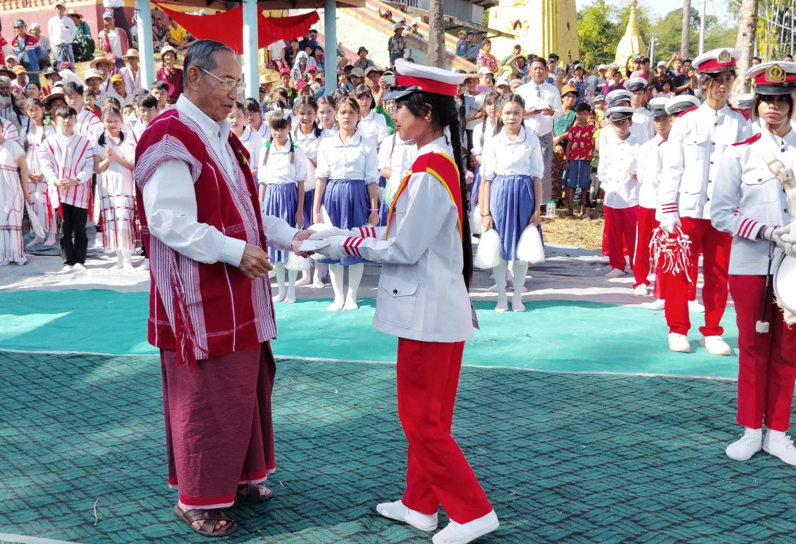 အဆိုပါအခမ်းအနားသို့ အမျိုးသားကာကွယ်ရေးနှင့်လုံခြုံရေးကောင်စီ ဗဟိုအကြံပေးအဖွဲ့ဝင် အဖိုးမန်းငြိမ်းမောင်နှင့် တိုင်းဒေသကြီးအစိုးရအဖွဲ့ဝင် ဝန်ကြီးများတက်ရောက်ခဲ့ကြပြီး ဘင်ခရာအဖွဲ့နှင့် ဒုံးယိမ်းအဖွဲ့များက ဧည့်ခံကြိုဆိုခဲ့ကြပြီးနောက်ကြိုဆိုဧည့်ခံခဲ့သည့်အဖွဲ့များအား အဖိုးမန်းငြိမ်းမောင်က ဂုဏ်ပြုဆုချီးမြှင့်ပေးခဲ့သည်။ ထို့နောက် ကံကြီးကျေးရွာ လျှပ်စစ်မီးဖွင့်ပွဲဆိုင်းဘုတ်အား အဖိုးမန်းငြိမ်းမောင်နှင့် တိုင်းဒေသကြီးအစိုးရအဖွဲ့ဝင်ဝန်ကြီးများက အမွှေးနံ့သာရည်များပက်ဖြန်းပေးခဲ့ကာ ဖဲကြိုးဖြတ်ဖွင့်လှစ်ပေးခဲ့သည်။ ဆက်လက်၍ အမျိုးသားကာကွယ်ရေးနှင့်လုံခြုံရေးကောင်စီဗဟိုအကြံပေးအဖွဲ့ဝင်သည် ကျေးရွာနေပြည်သူများနှင့်နွေးထွေးရင်းနှီးစွာတွေ့ဆုံခဲ့ပြီး ဒေသဆိုင်ရာဖွံ့ဖြိုးတိုးတက်ရေးကိစ္စရပ်များအား ဆွေးနွေးပြောကြားခဲ့သည်။
