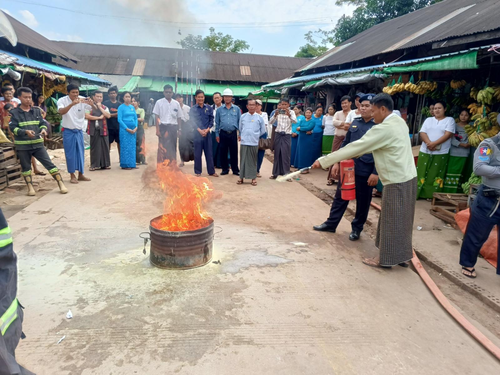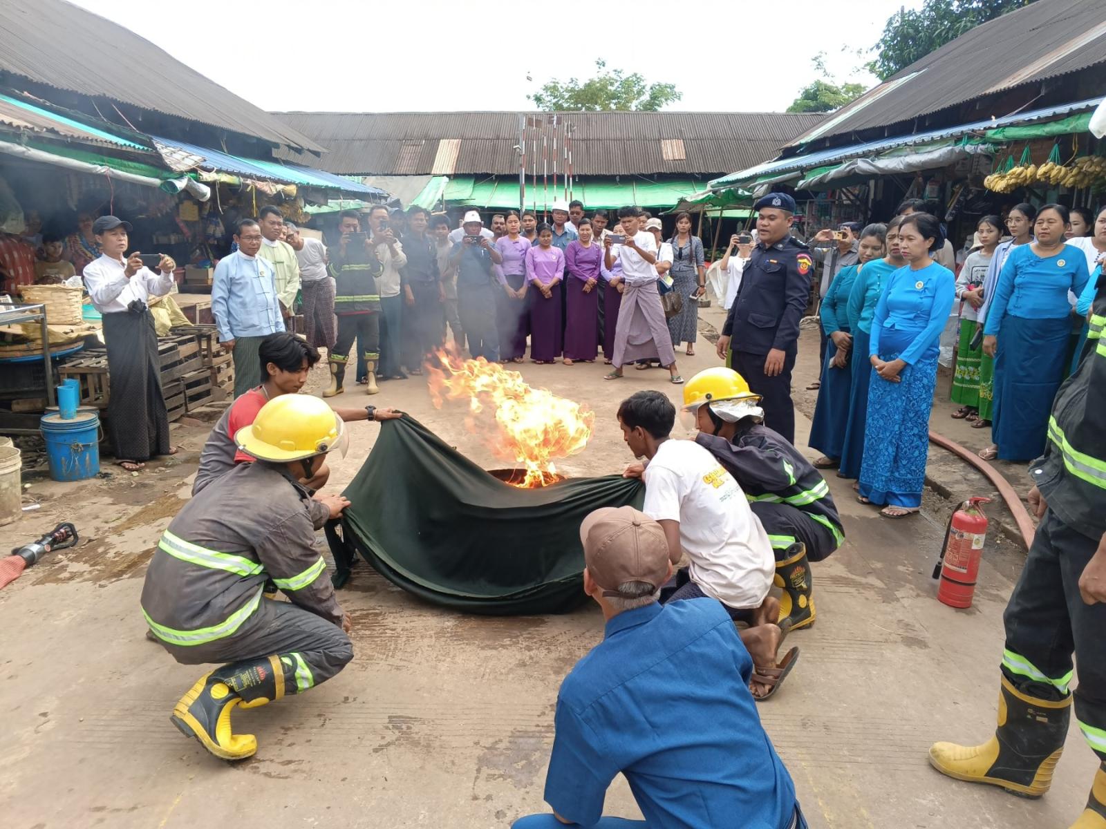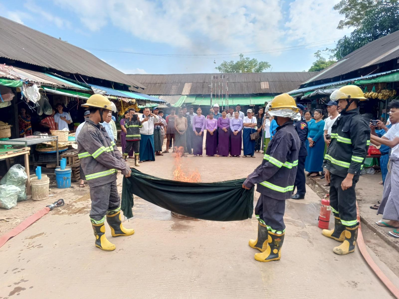 ထို့နောက် မီးဘေးလုံခြုံရေးနှင့် ဇာတ်တိုက်လေ့ကျင့်ခြင်းသရုပ်ပြပွဲသို့ မြို့နယ်အဆင့်ဌာနဆိုင်ရာများနှင့်ဈေးသူ၊ဈေးသားများတက်ရောက်ခဲ့ပြီး ဇာတ်တိုက်သရုပ်ပြခြင်း များ ပူးပေါင်းဆောင်ရွက်ခဲ့ကြောင်း သိရသည်။