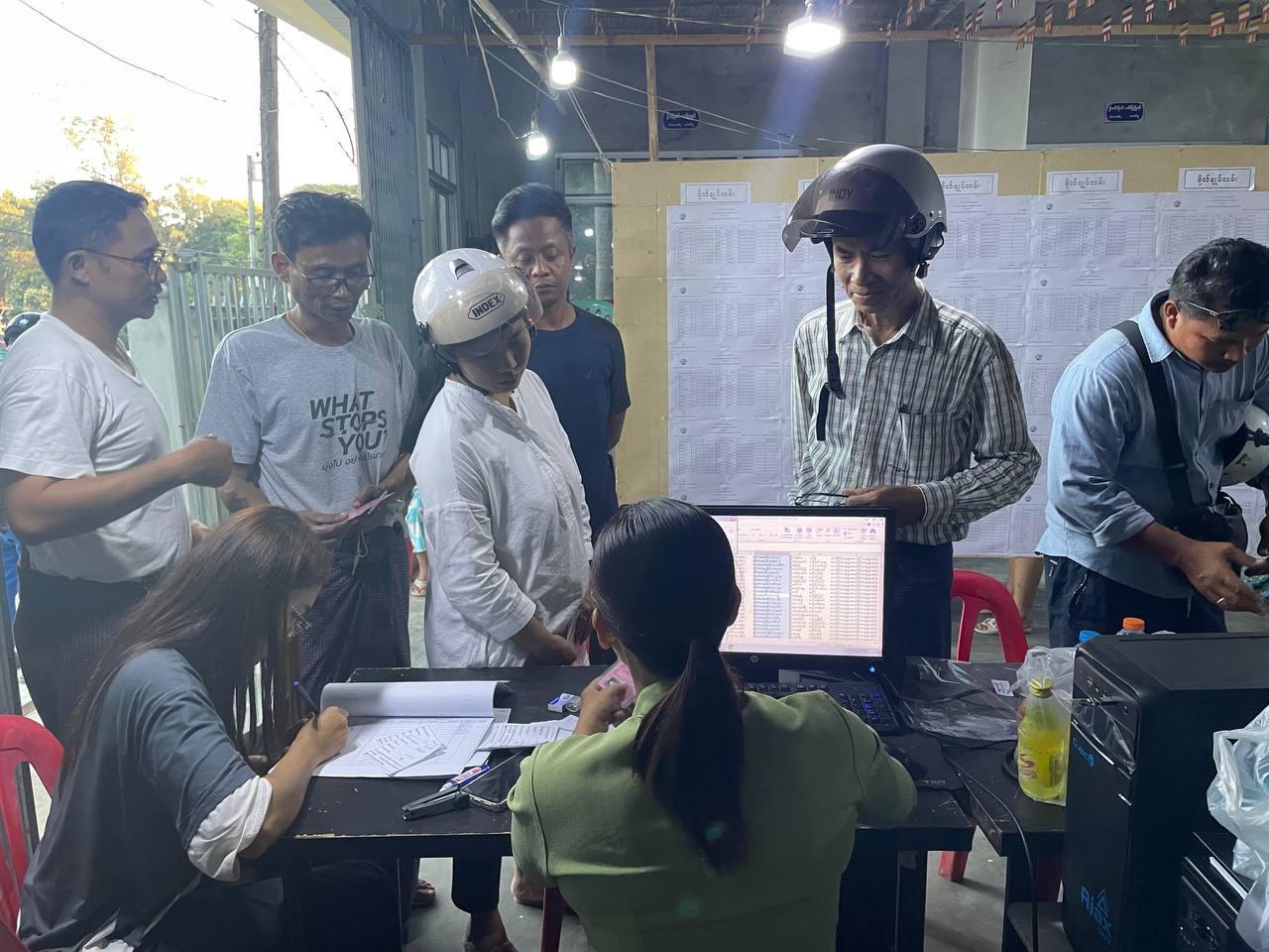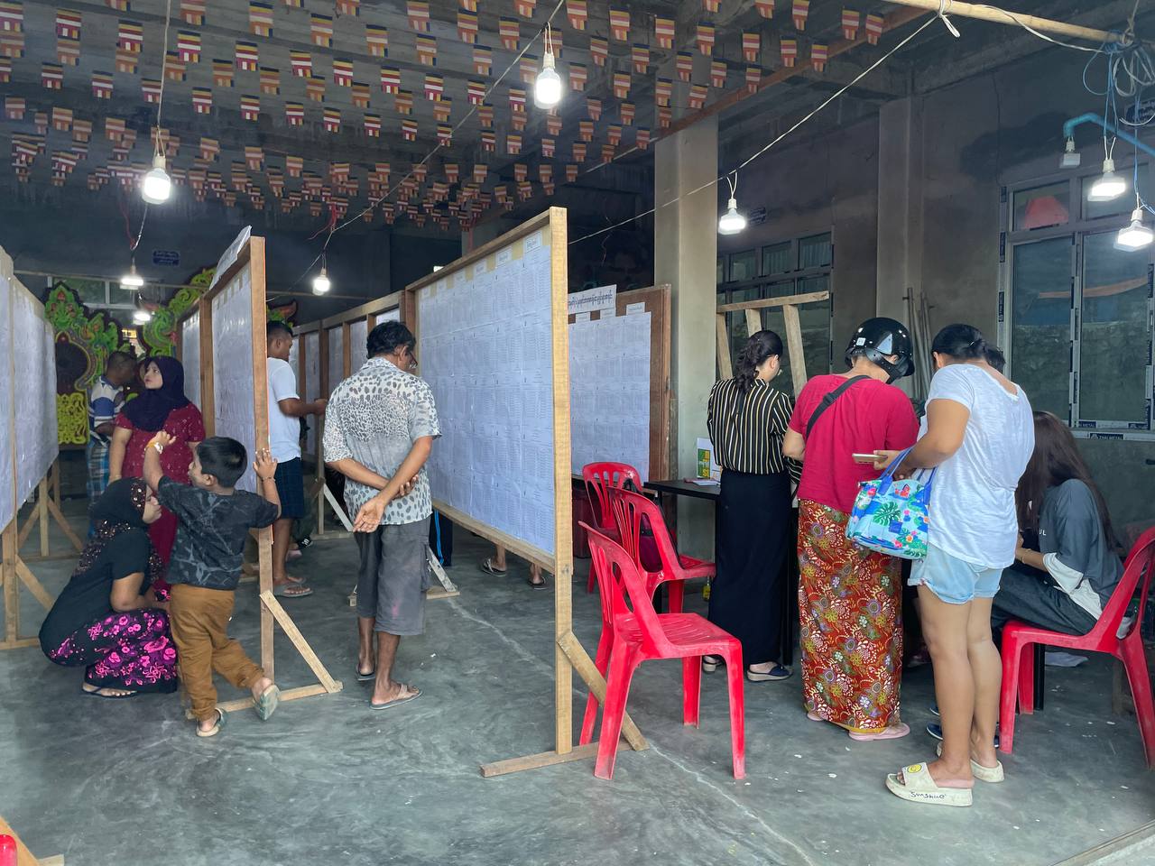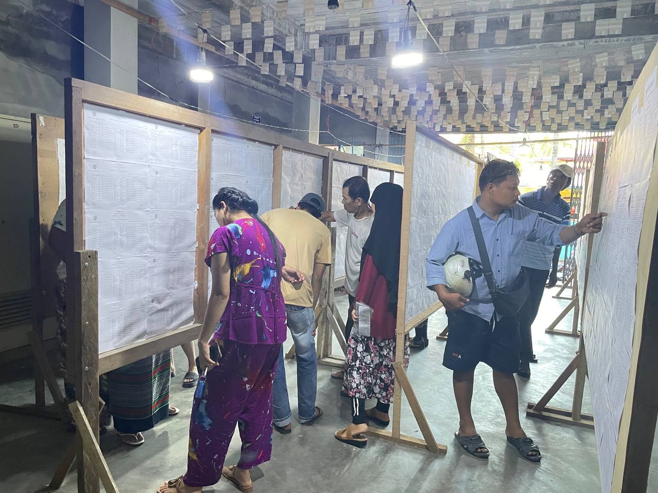 တနင်္သာရီတိုင်းဒေသကြီး၊ ကော့သောင်းခရိုင်၊ ကော့သောင်းမြို့တွင် ၂၀၂၅ ခုနှစ်၊ ဒီဇင်ဘာလ ၂၈ ရက်တွင် ကျင်းပမည့် ပါတီစုံဒီမိုကရေစီအထွေထွေရွေးကောက်ပွဲအတွက် မဲဆန္ဒရှင်စာရင်းများ သက်ဆိုင်ရာ ရပ်ကွက်/ကျေးရွာ အုပ်စုကော်မရှင်အဖွဲ့ခွဲရုံးများတွင် ယမန်နေ့ကစ၍ ကပ်ထားကြေညာလျက်ရှိရာ အဆိုပါမဲစာရင်းကပ်ထားမှု ကြေညာထားရှိမှုများအား မဲဆန္ဒရှင်ပြည်သူများ လာရောက်ကြည့်ရှုလျက်ရှိသည်။