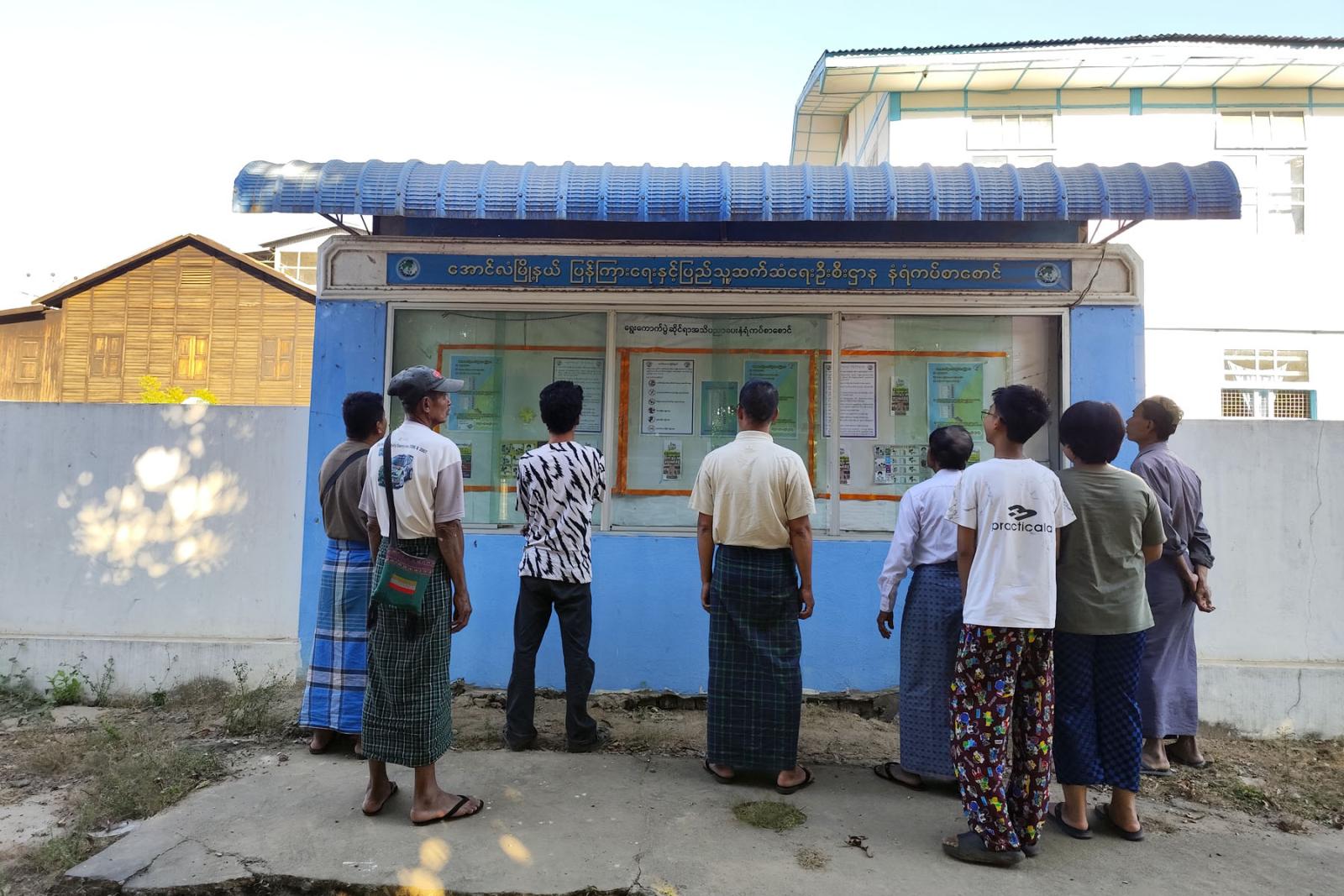 အဆိုပါ မြေစိုက်နံရံကပ်ဘုတ်၌ ၂၀၂၅ ခုနှစ်၊ ပါတီစုံဒီမိုကရေစီအထွေထွေရွေးကောက်ပွဲကြီးတွင် မဲဆန္ဒရှင်ပြည်သူများအနေဖြင့် ဆန္ဒမဲပေးရာ၌ မြန်မာအီလက်ထရောနစ်မဲပေးစက်ဖြင့် မဲပေးခြင်းဆိုင်ရာများ၊ ဆန္ဒမဲပေးရာ၌ ဆောင်ရွက်ရမည့် ဆောင်ရန်/ရှောင်ရန် အသိပညာပေးနံရံကပ်ပိုစတာများနှင့် “ဒို့အတူတူမဲပေးကြမယ်” အသိပညာပေးလက်ကမ်းစာစောင်များ ပြသထားကြောင်း သိရသည်။