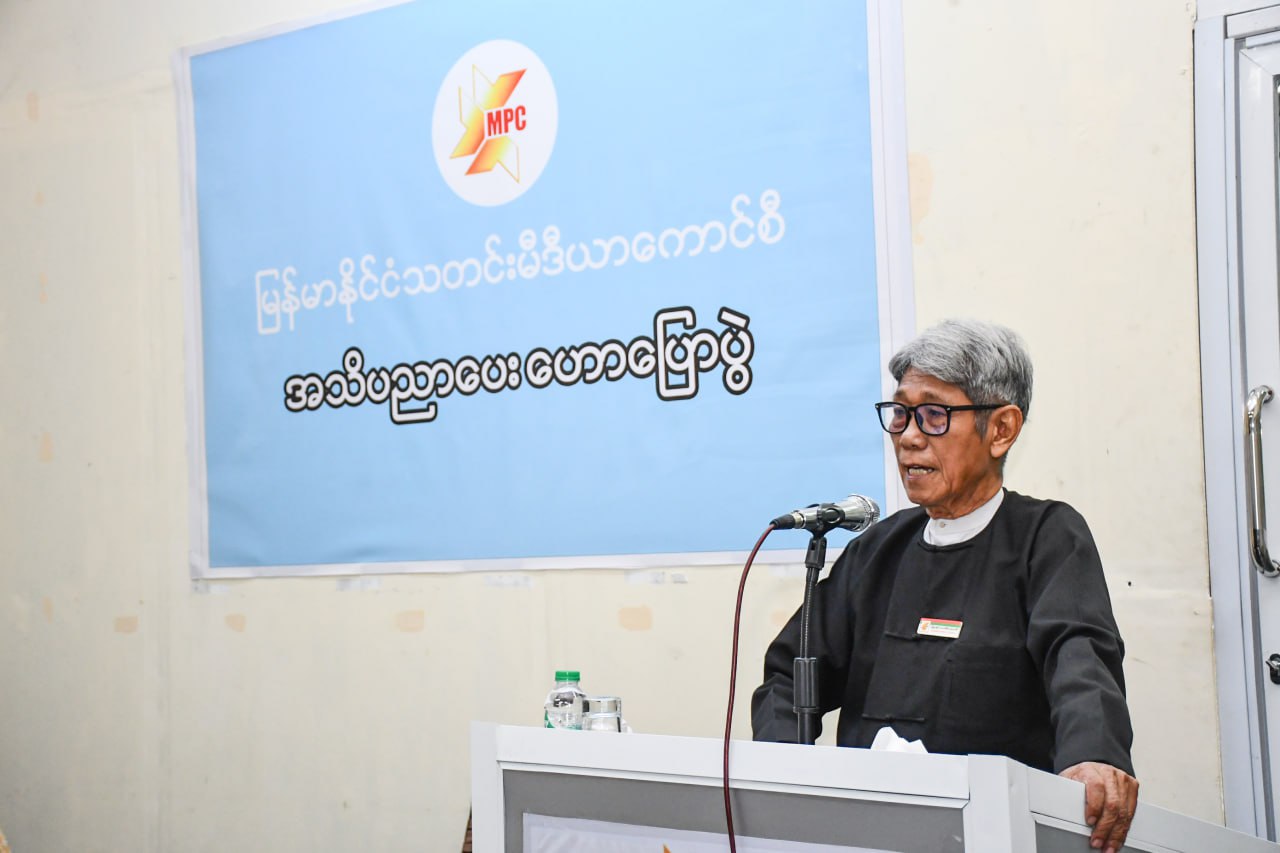 ဦးစွာ မြန်မာနိုင်ငံသတင်းမီဒီယာကောင်စီဥက္ကဋ္ဌ ဒေါက်တာတင်ထွန်းဦးက အသိပညာပေးဟောပြောပွဲ ကျင်းပရခြင်း၏ ရည်ရွယ်ချက်ကို ရှင်းလင်းပြောကြားသည်။