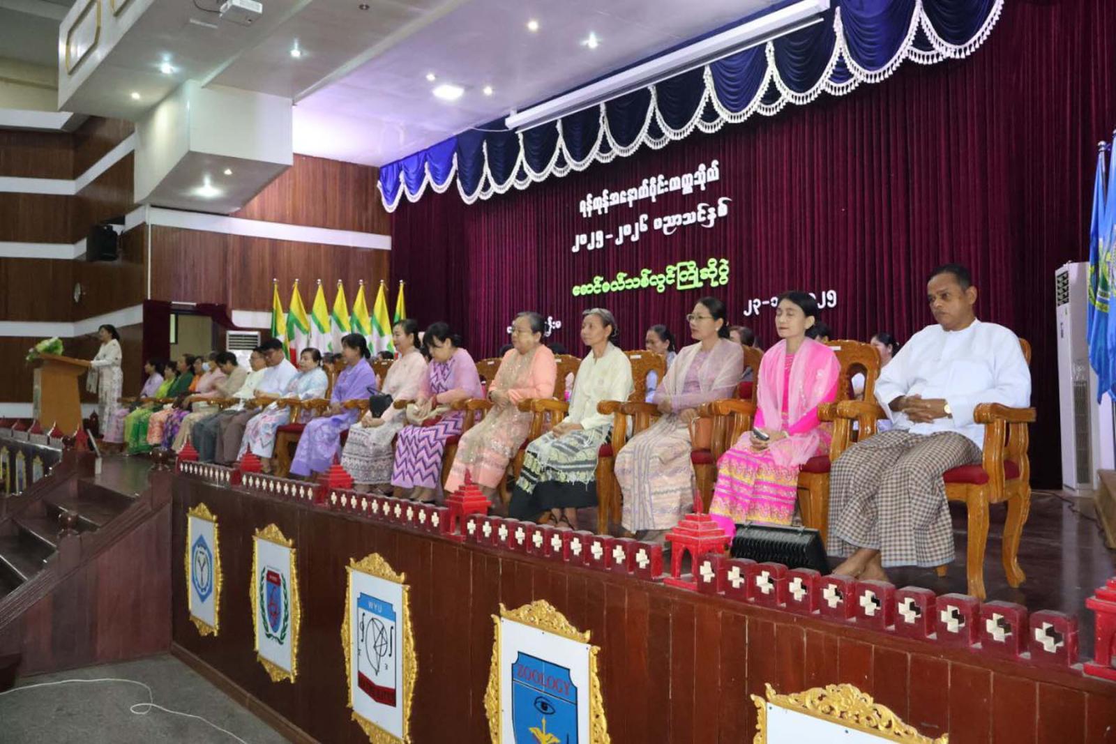 ထို့နောက် ရန်ကုန်အနောက်ပိုင်းတက္ကသိုလ်ရှိ ဌာနအသီးသီးမှ ဌာနမှူး၊ သင်တန်းရေးရာဌာန အရာထမ်းများနှင့် ကျောင်းသား၊ ကျောင်းသူများအား မိတ်ဆက်ပေးခြင်းအစီအစဉ်ကို စတင်ခဲ့ကြပြီး ဘာသာရပ်များကိုယ်စား ဓါတုဗေဒဌာနပါမောက္ခ (ဌာနမှူး) ဒေါက်တာမြင့်ငွေက ကြိုဆိုနှုတ်ခွန်းဆက်စကားများ ပြောကြားခဲ့ကြကြောင်း သိရသည်။