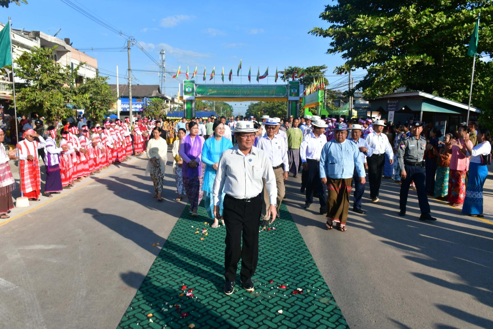 ထို့နောက် ပြည်နယ်ဝန်ကြီးချုပ်က ဖွင့်ပွဲမုခ်ဦးများကို စက်ခလုပ်နှိပ်ဖွင့်လှစ်ပေးပြီး ပြည်နယ်ဝန်ကြီးချုပ်၊ ပြည်နယ်တရားလွှတ်တော်တရားသူကြီးချုပ်၊ ပြည်နယ်အစိုးရအဖွဲ့ဝင်များနှင့် တာဝန်ရှိသူများက သီရိလမ်းဘေးဝဲယာကားပါကင်နေရာတိုးချဲ့ခြင်း၊ ရေမြောင်းပလက်ဖောင်းပြုလုပ်ခြင်းနှင့် လုပ်သားလမ်းရေမြောင်းပလက်ဖောင်းပြုလုပ်ခြင်းတို့ကို ဖဲကြိုးဖြတ်ဖွင့်လှစ်ပေးကြကာ ဖွင့်ပွဲတွင် ပါဝင်အားဖြည့်ကူညီပေးကြသော ယဉ်ကျေးမှုအဖွဲ့များအား ဂုဏ်ပြုဆုများ ပေးအပ်ချီးမြှင့်၍ စုပေါင်းမှတ်တမ်းဓာတ်ပုံများ ရိုက်ကူးခဲ့ကြသည်။