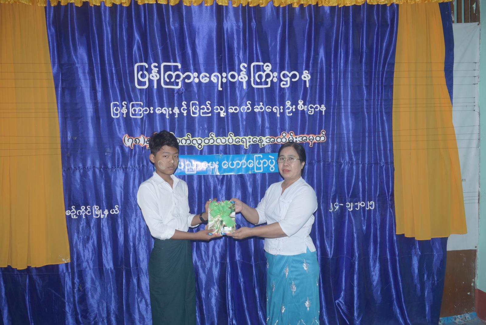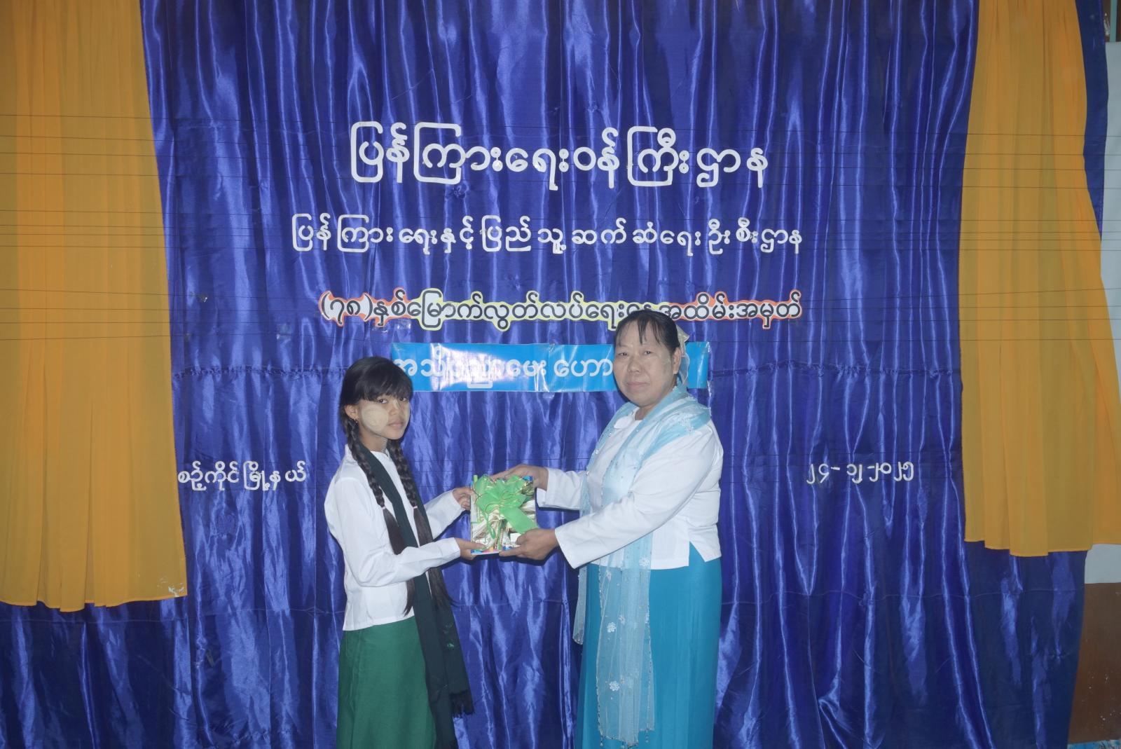 ဆက်လက်၍ စာအုပ်စာစောင်ချစ်မြတ်နိုးသူများအသင်း နာယက ဦးသန်းအောင်က လွတ်လပ်ရေးနေ့နှင့်ပတ်သက်သည့် အကြောင်းအရာများကို အသိပညာပေး ဟောပြောဆွေးနွေးခဲ့သည်။ ထို့နောက် (၇၈)နှစ်မြောက် လွတ်လပ်ရေးနေ့အထိမ်းအမှတ် စာစီစာကုံးပြိုင်ပွဲ၊ ပန်းချီပြိုင်ပွဲ၊ စာဖတ်စွမ်းရည် ပြိုင်ပွဲ၊ ကဗျာရွတ်ပြိုင်ပွဲများတွင် ဆုရရှိခဲ့သည့် ကျောင်းသား၊ ကျောင်းသူများအား မြို့နယ်ဦးစီးအရာရှိ နှင့် တာဝန်ရှိသူများက ဆုများအသီးသီး ချီးမြှင့်ပေးအပ်ခဲ့သည်။