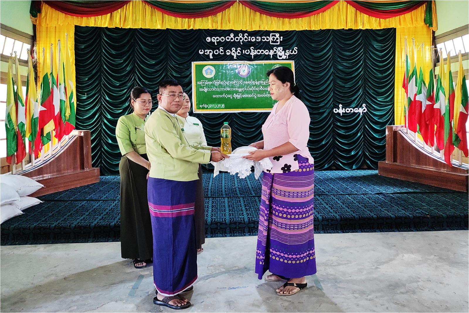 ရှေ့ဦးစွာ မြို့နယ်စီမံ ခန့်ခွဲရေးနှင့်အုပ်ချုပ်ရေးကော်မတီဥက္ကဋ္ဌ ဦးနိုင်ဝင်းက အဖွင့်အမှာ စကားပြောကြားခဲ့သည်။ ထို့နောက် ပန်းတနော်မြို့အတွင်း ရောက်ရှိနေထိုင်လျက်ရှိသည့် နေရပ်စွန့်ခွာပြည်သူ(၂၂၉)ဦးအား ၂၀၂၅ ခုနှစ်၊ ဇူလိုင်လ၊ ဩဂုတ်လ၊ စက်တင်ဘာလ ( ၃ )လစာအဖြစ် ( ၁ )လျှင် (၂၀၀၀၀) ကျပ်နှုန်းဖြင့် (၆၀၀၀၀)ကျပ် စုစုပေါင်း ငွေကျပ် (၁၃၇၄၀၀၀၀)ကျပ် ကို မြို့နယ်စီမံ ခန့်ခွဲရေးနှင့်အုပ်ချုပ်ရေးကော်မတီဥက္ကဋ္ဌ ဦးနိုင်ဝင်းက ပေးအပ်ခဲ့ပြီး အရှေ့ပိုင်းရပ် နေရပ်စွန့်ခွာ ပြည်သူ(၃)ဦးက လက်ခံခဲ့ရယူခဲ့သည်။ ဆက်လက်၍ အသက်(၁၈)နှစ်အထက် တိုင်ပွဲရှောင် ပြည်သူ(၁၄၄)ဦးအား ဆီ(၅၀)ကျပ်သား၊ ဆန် (၁)ပြည် တို့ကို ထောက်ပံ့ပေးအပ်ခဲ့ကြောင်း သိရသည်။