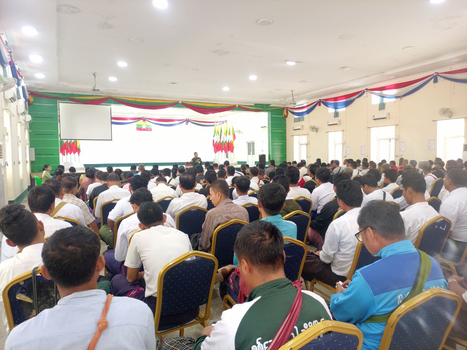 ကရင်ပြည်နယ် ဘားအံခရိုင် လှိုင်းဘွဲမြို့နယ်အတွင်းရှိ ရွေးကောက်ပွဲကျင်းပမည့် သက်ဆိုင်ရာရပ်ကွက်/ကျေးရွာအုပ်စုများတွင် ရွေးကောက်ပွဲနှင့်ပတ်သက်၍ မဲရုံများကြိုတင်ပြင်ဆင်ထားရှိမှု၊ လုံခြုံရေးနှင့်အုပ်ချုပ်ရေးဆောင်ရွက်မည့် အစီအစဉ်များ၊ ဆောင်ရွက်ရမည့်လုပ်ငန်းများအား ဒုတိယအကြိမ်ညှိနှိုင်းအစည်းအဝေးကို ယနေ့နံနက်(၁၀)နာရီက လှိုင်းဘွဲမြို့ အောင်ဆန်းခန်းမ၌ ကျင်းပသည်။