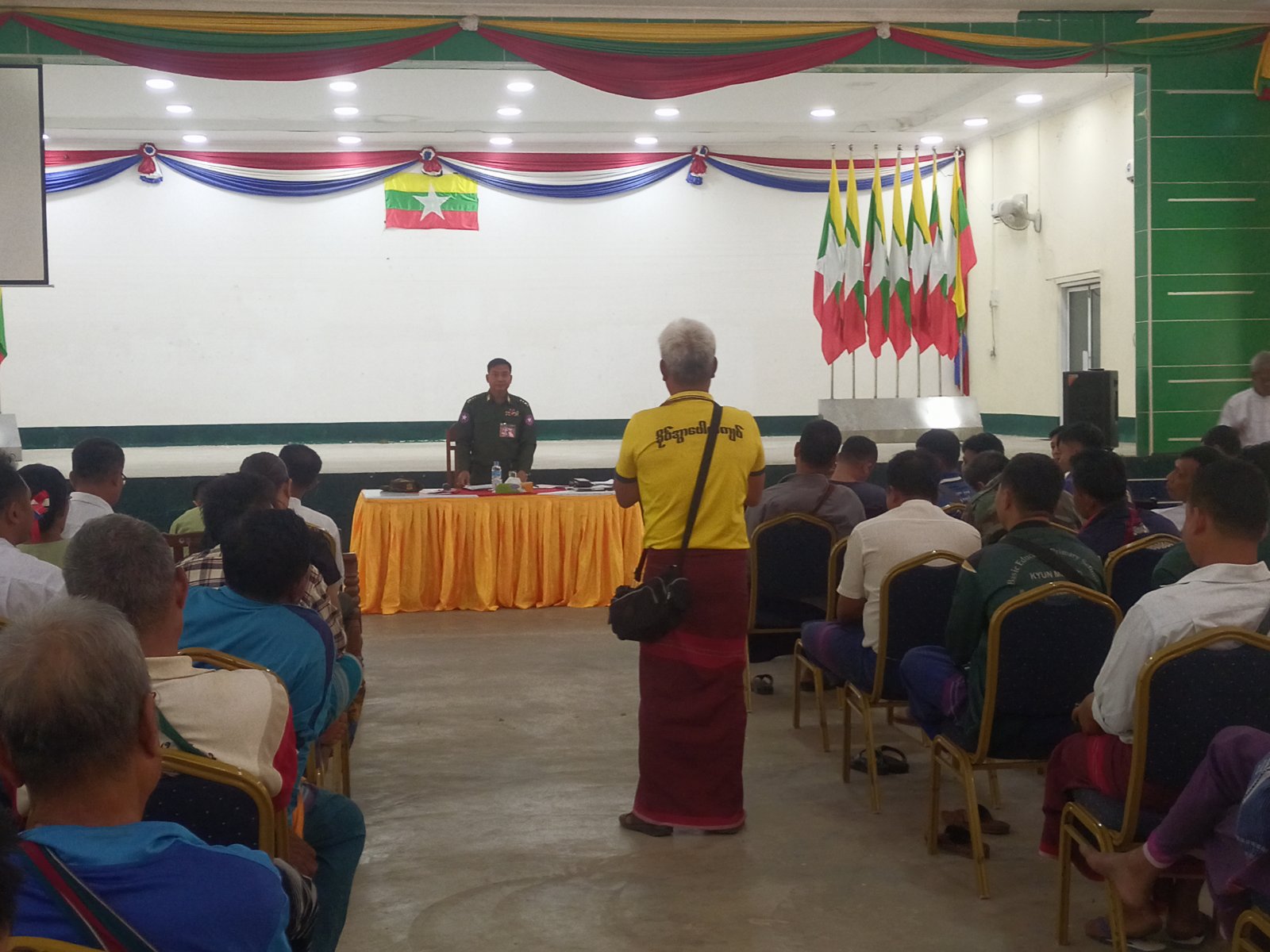 ထို့နောက် မြို့နယ်စီမံခန့်ခွဲရေးနှင့်အုပ်ချုပ်ရေးကော်မတီအဖွဲ့ဝင် ဗိုလ်မှူးဇော်ရှိန်းအောင်က လုံခြုံရေးဖြန့်ခွဲထားရှိမှု အခြေအနေများကို ရှင်းလင်းတင်ပြခဲ့ပြီး သက်ဆိုင်ရာ ရပ်ကွက်/ကျေးရွာအုပ်စု များရှိ မဲရုံများတွင် တာဝန်ရှိသူများက လုံခြုံရေးဆိုင်ရာ ကိစ္စရပ်များ၊ မဲရုံတာဝန်ထမ်းဆောင်မှုအခြေအနေများ၊ အရေးပေါ်အခြေအနေတွင်ဆောင်ရွက်ရမည့်လုပ်ငန်းများ၊ ဆက်သွယ်မှုစနစ်များကို ဆွေးနွေးတင်ပြသည်။