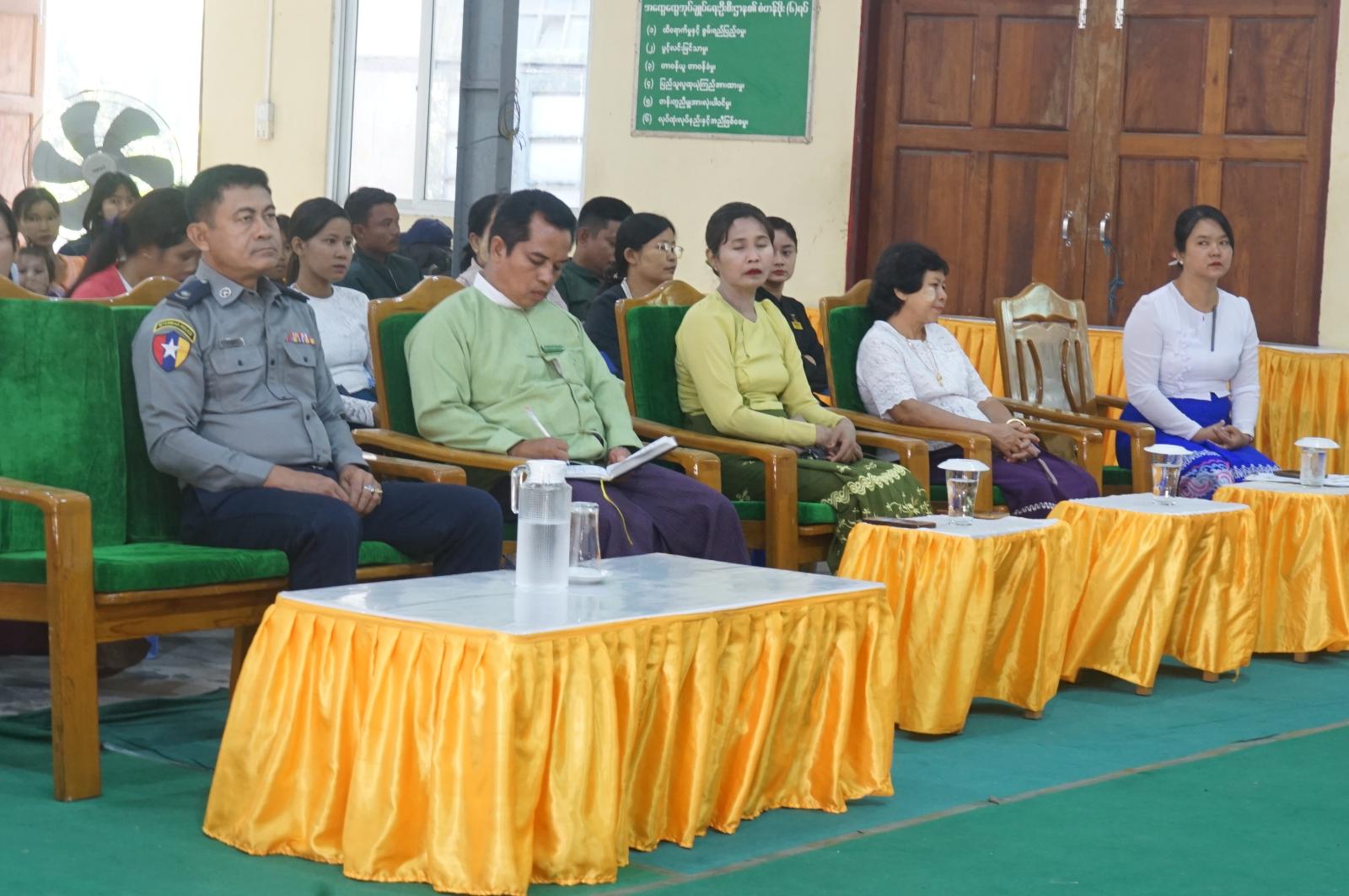 ဧရာဝတီတိုင်းဒေသကြီး၊ လပွတ္တာခရိုင်၊ မော်လမြိုင်ကျွန်းမြို့နယ်၊ အထွေထွေအုပ်ချုပ်ရေးဦးစီးဌာန၊ မော်ဧရာခန်းမ၌ ဒီဇင်ဘာ ၂၄ ရက်နေ့ နံနက်ပိုင်းက ယာယီနေရပ်စွန့်ခွာပြည်သူများအား အမျိုးသားသဘာဝဘေးအန္တရာယ် စီမံခန့်ခွဲမှုရန်ပုံငွေမှပံ့ပိုးငွေပေးအပ်ခြင်း အခမ်းအနားကျင်းပပြုလုပ်ခဲ့သည်။