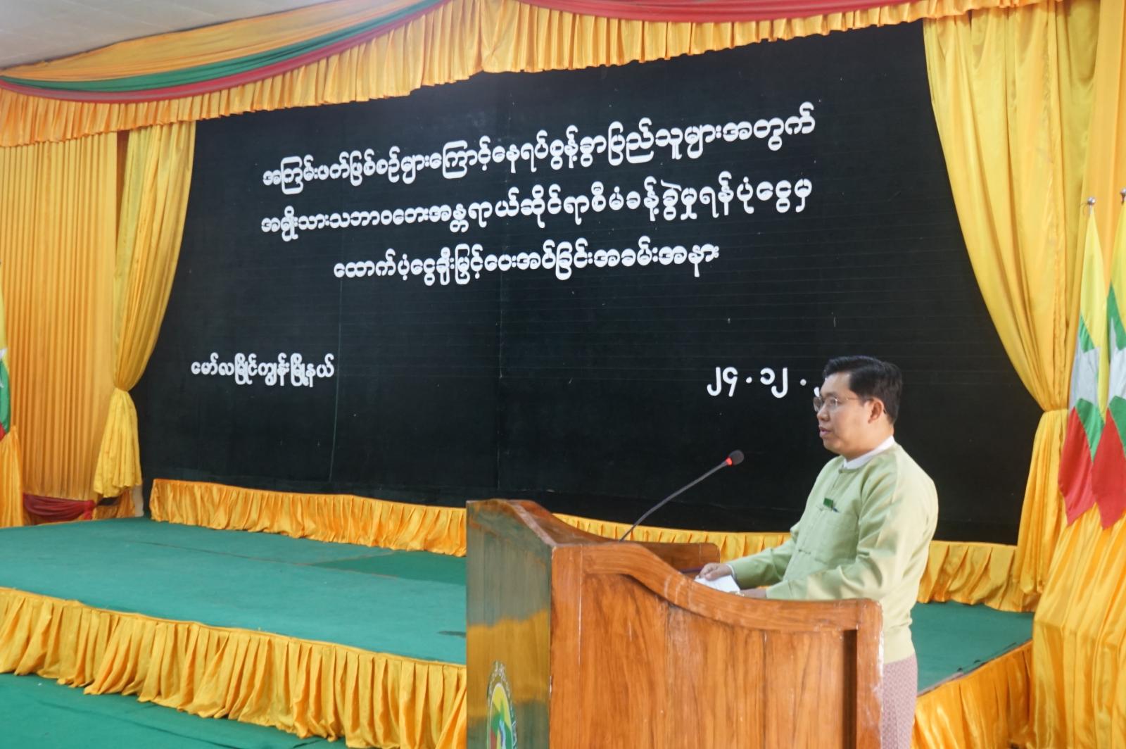 ရှေ့ဦးစွာ မြို့နယ်စီမံခန့်ခွဲရေးနှင့်အုပ်ချုပ်ရေးကော်မတီဥက္ကဋ္ဌ ဦးခင်မောင်ဦးက ပံ့ပိုးငွေများ ပေးအပ်ရခြင်းနှင့်ပတ်သက်၍ ရှင်းလင်းပြောကြားခဲ့ပြီးနောက် ယာယီနေရပ်စွန့်ခွာ ပြည်သူတစ်ဦးမှ ကျေးဇူးတင်စကားပြန်လည်ပြောကြားခဲ့သည်။