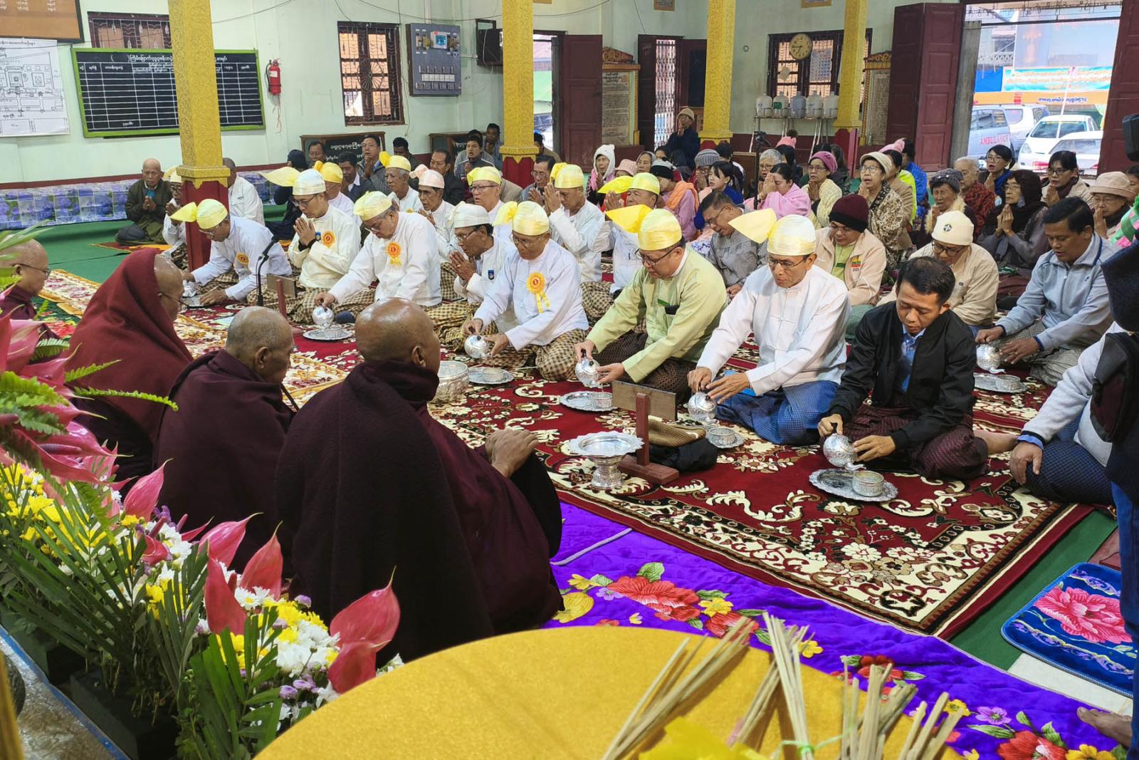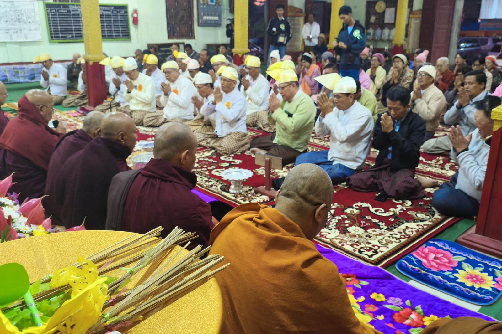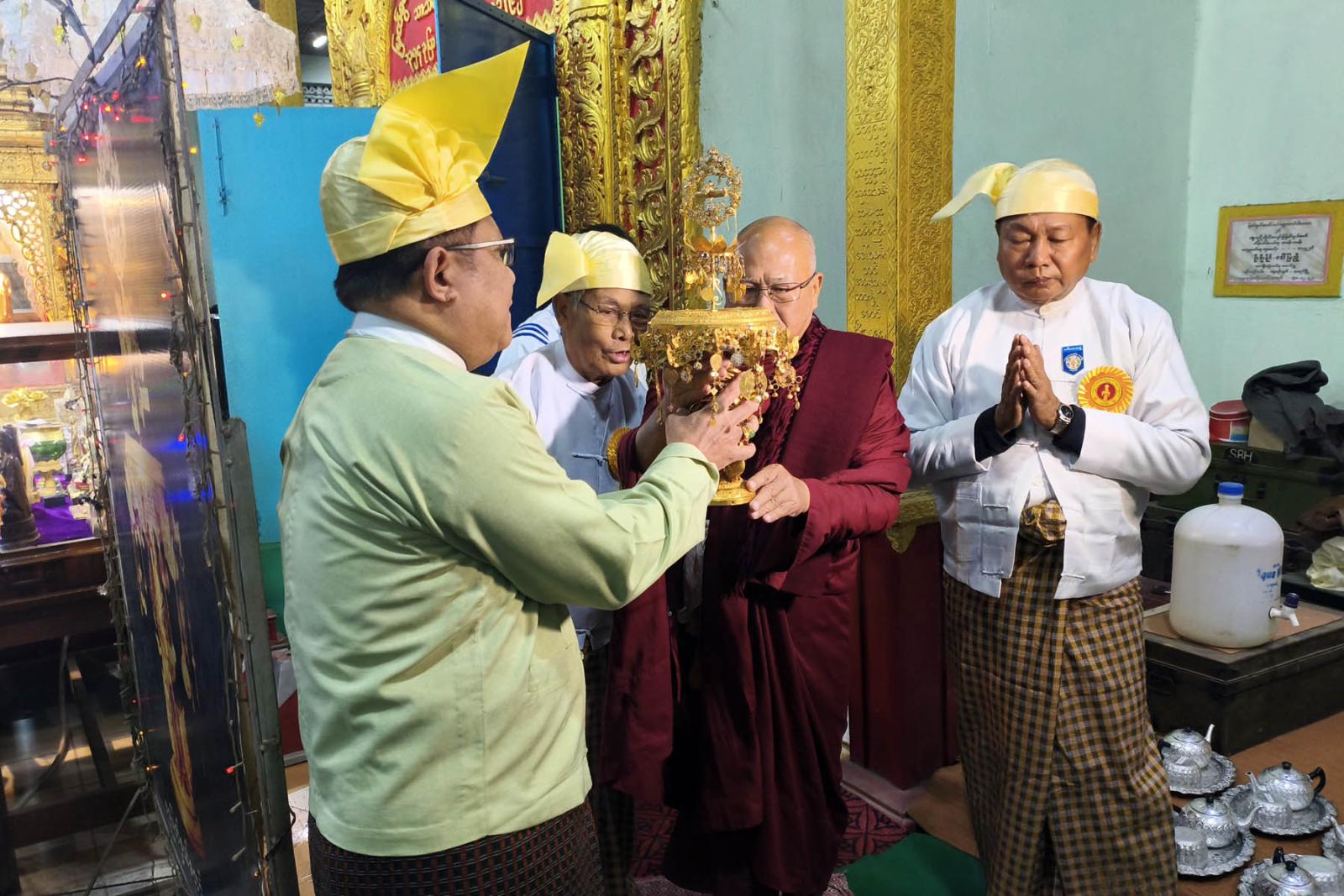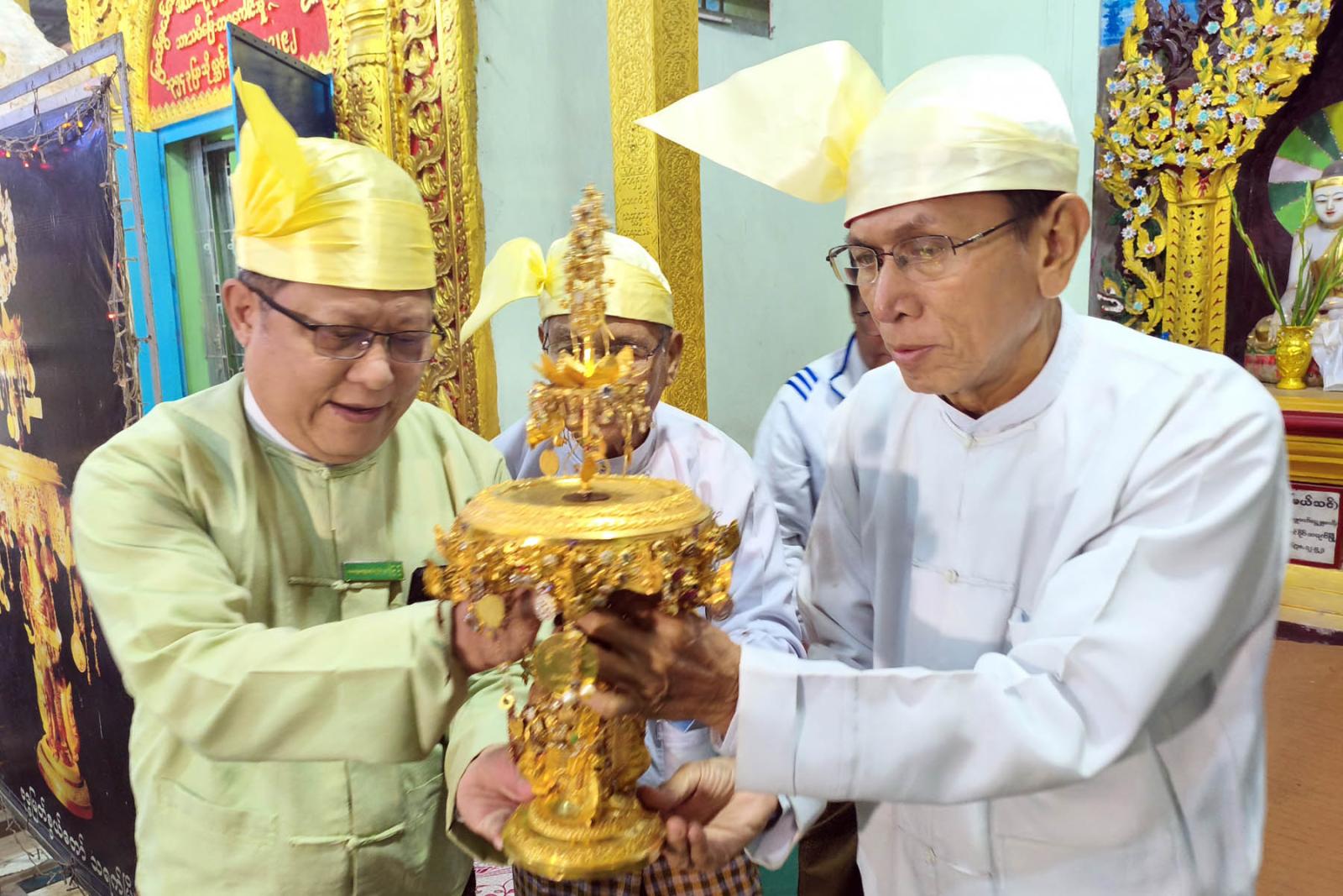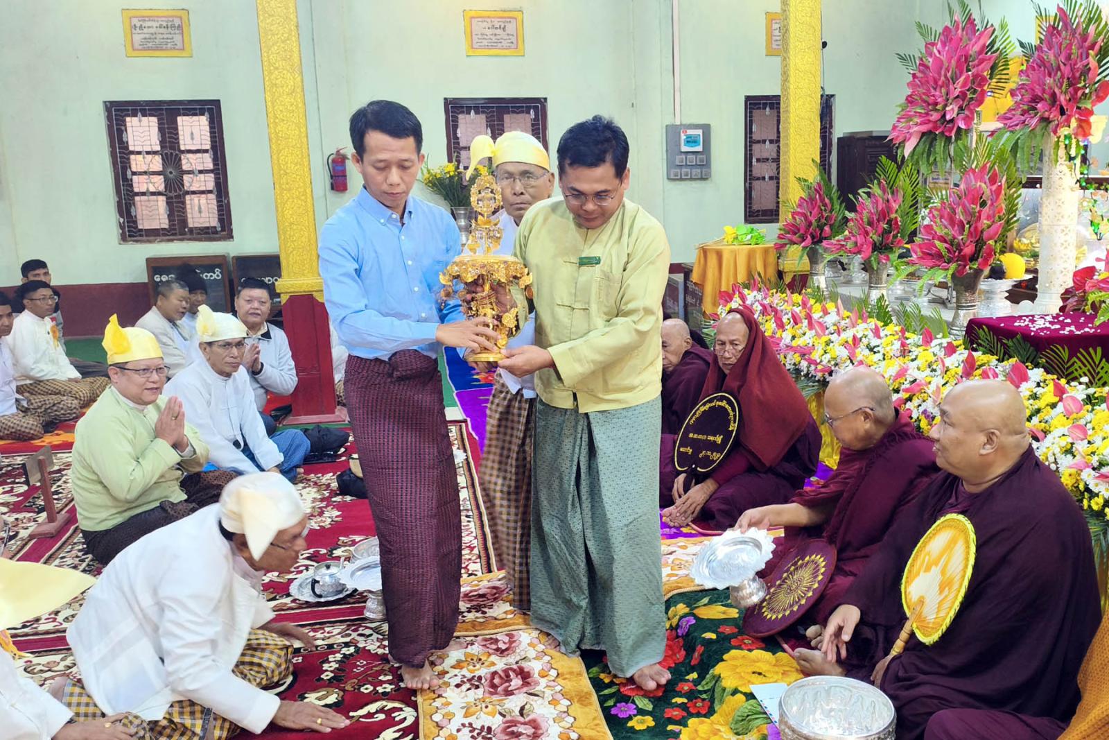 ထို့နောက် ဆရာတော်ကြီးများက ပရိတ်တရားတော်များ ရွတ်ဖတ်ပူဇော်ပေးခဲ့ပြီး ဆရာတော်များအား ဝတ္ထုအလှူငွေများ ဆက်ကပ်ပေးခဲ့ကာ မြခဲတောင်ကျောင်းထိုင်ဆရာတော်ထံမှ အနုမောဒနာ တရားနာယူ၍ လှူဒါန်းမှု အစုစုအတွက် အမျှပေးဝေခဲ့ပြီး ဗုဒ္ဓမြတ်စွယ်တော်ကို ဂန္ဓကုဋီတိုက်ရွှေစေတီအတွင်းသို့ ပင့်ဆောင်၍လည်းကောင်း ဆရာတော်များက "ဇယံတော ဗောဓိယာမူလေ" အစချီသော အောင်ဂါတာများ ရွတ်ဖတ်ပူဇော်ပေးခဲ့ကြပြီး "ဗုဒ္ဓသာသနံစိရံ တိဌတု" (၃)ကြိမ်ရွတ်ဆို၍ အခမ်းအနားကို ရုပ်သိမ်းခဲ့ကြောင်း သိရသည်။