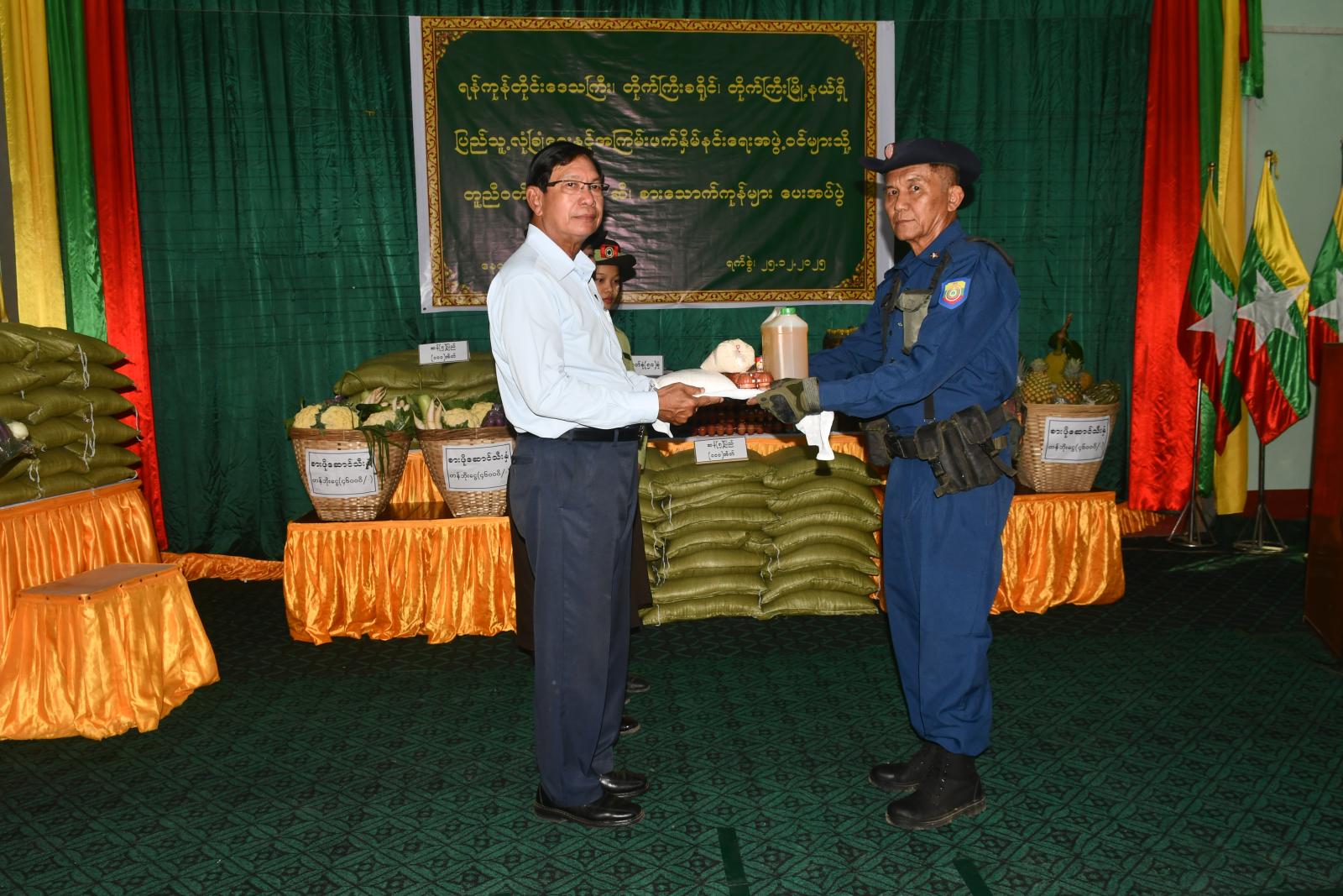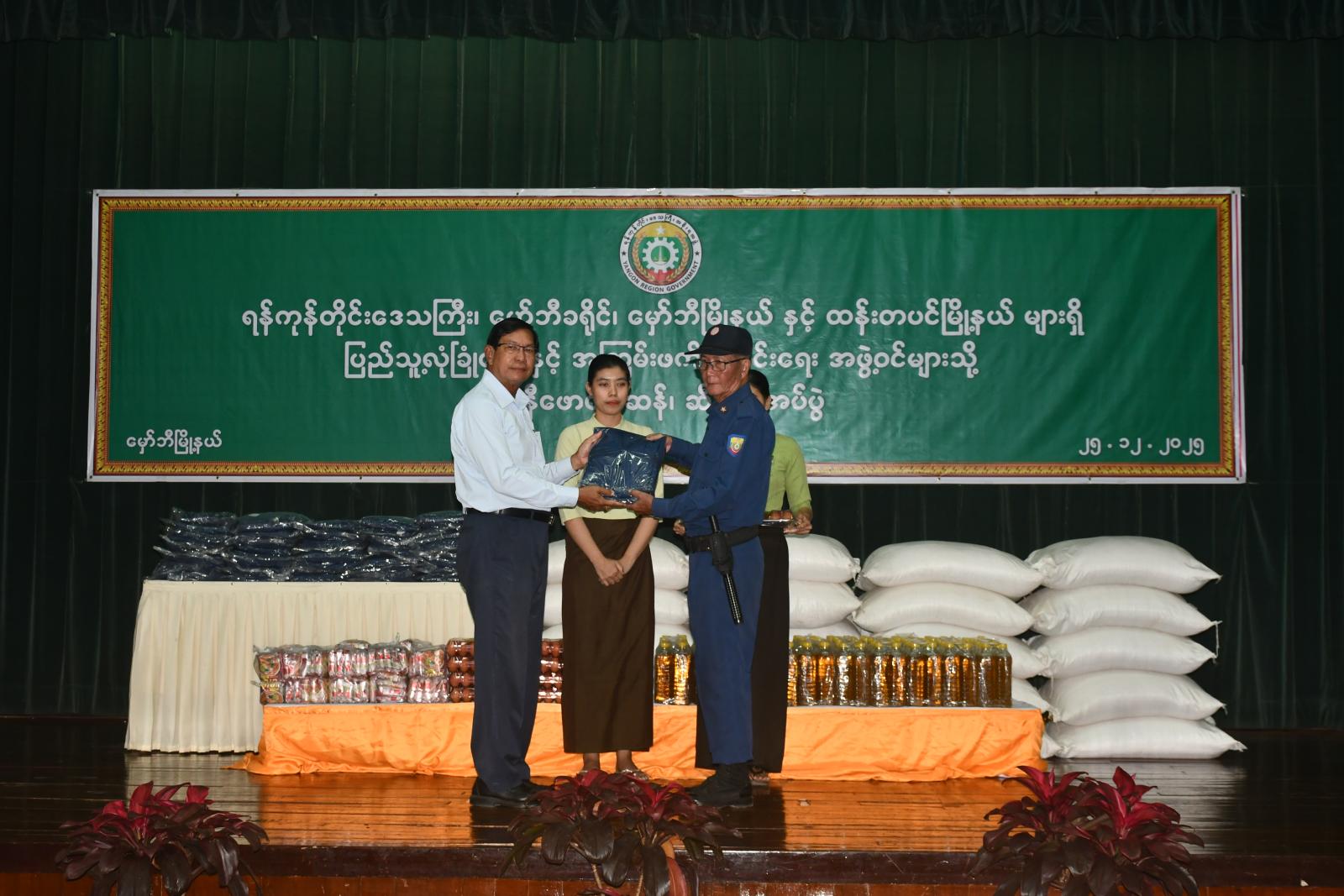 ရန်ကုန်တိုင်းဒေသကြီးအတွင်းရှိ တိုက်ကြီးခရိုင်၊ မှော်ဘီခရိုင်နှင့် မင်္ဂလာဒုံခရိုင်တို့မှ ပြည်သူ့ လုံခြုံရေးနှင့် အကြမ်းဖက်နှိမ်နင်းရေး အဖွဲ့ဝင်များသို့ ယူနီဖောင်၊ ဆန်၊ ဆီနှင့်စားသောက်ကုန်များ ပေးအပ်ပွဲ အခမ်းအနား ကျင်းပ