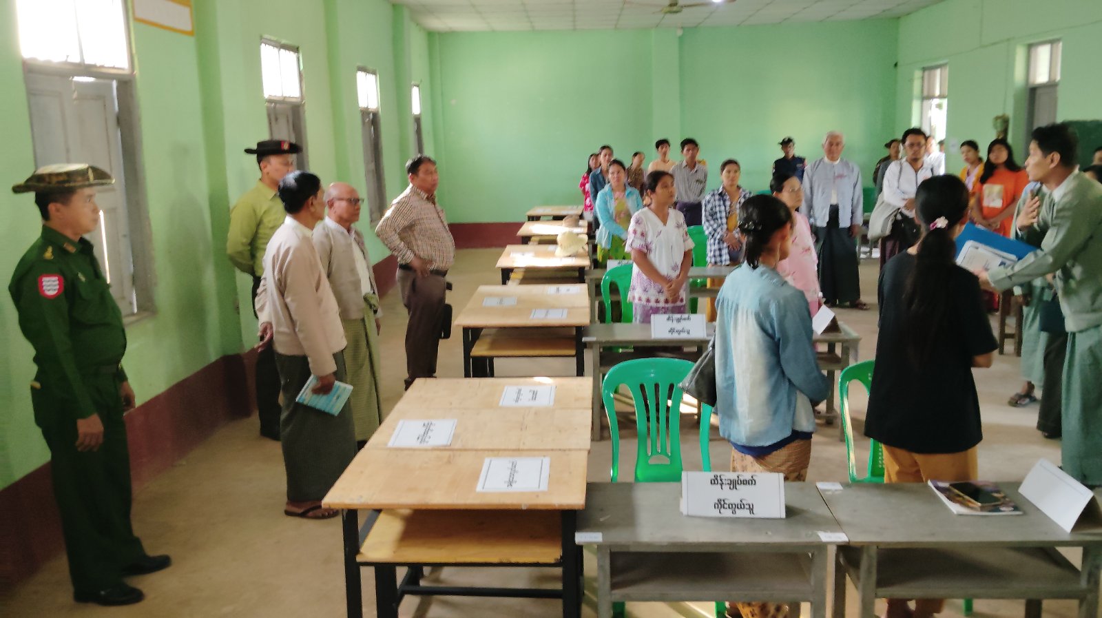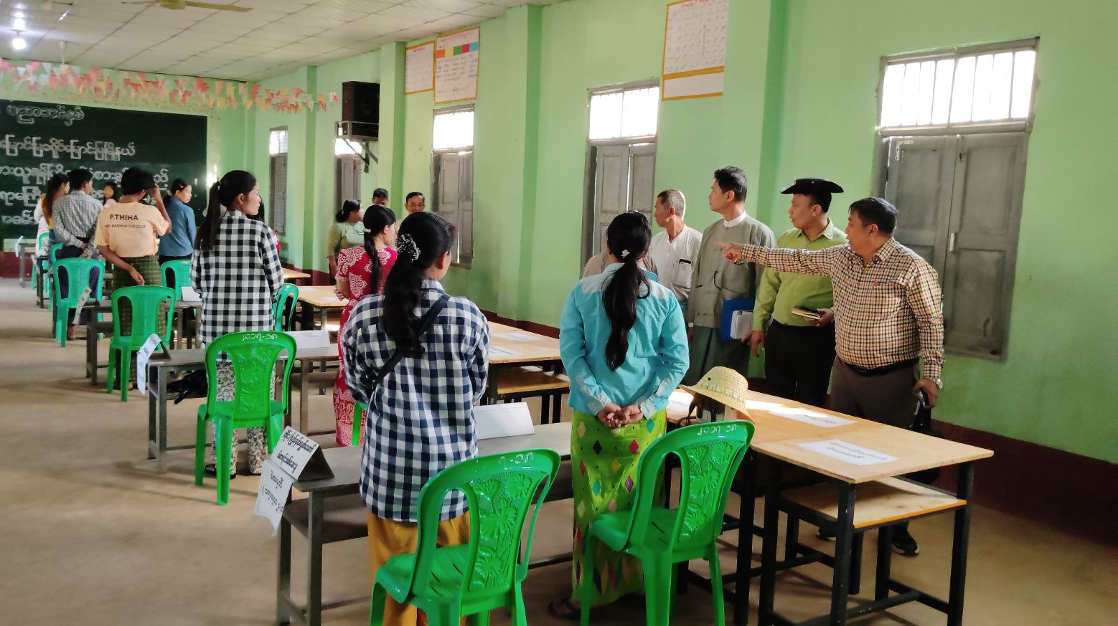 ပြည်ထောင်စုရွေးကောက်ပွဲကော်မရှင်အဖွဲ့ဝင်၊ ဧရာဝတီတိုင်းဒေသကြီး တာဝန်ခံ ဦးတင်ဆွေဝင်းသည် မြောင်းမြမြို့ရှိ မဲရုံများပြင်ဆင်ထားရှိမှုအခြေအနေများအား ဒီဇင်ဘာလ ၂၄ ရက်က ကွင်းဆင်းကြည့်ရှုခဲ့သည်။