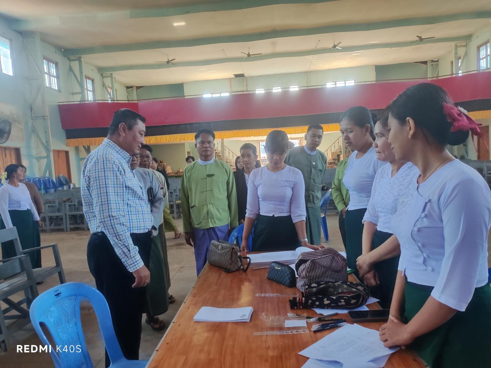 ထို့နောက် ပြည်ထောင်စု ရွေးကောက်ပွဲကော်မရှင်အဖွဲ့ဝင် ဦးကိုကိုလွင်နှင့် တာဝန်ရှိသူများက မြို့နယ်ရွေးကောက်ပွဲကော်မရှင်အဖွဲ့ခွဲဥက္ကဋ္ဌ ဦးကျော်စိုးဦးနှင့် တာဝန်ရှိသူများအားတွေ့ဆုံကာ လိုအပ်သည်များကို ညှိနှိုင်းဆောင်ရွက်ပေးခဲ့သည်။