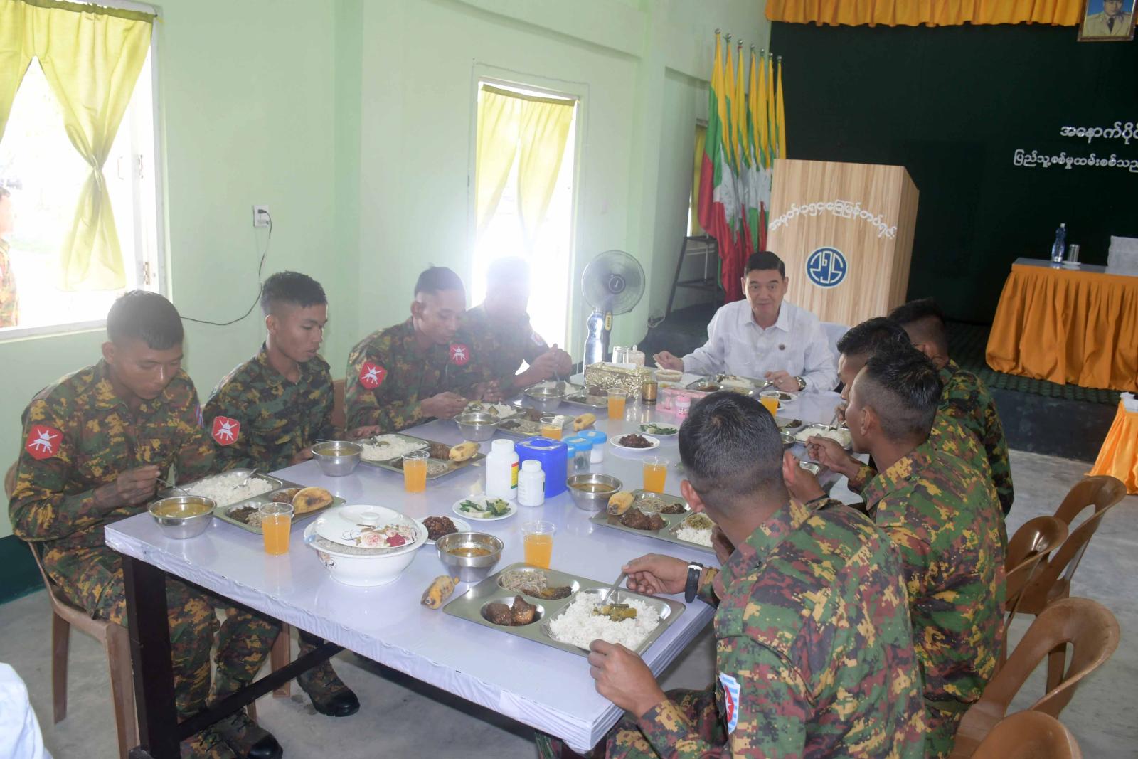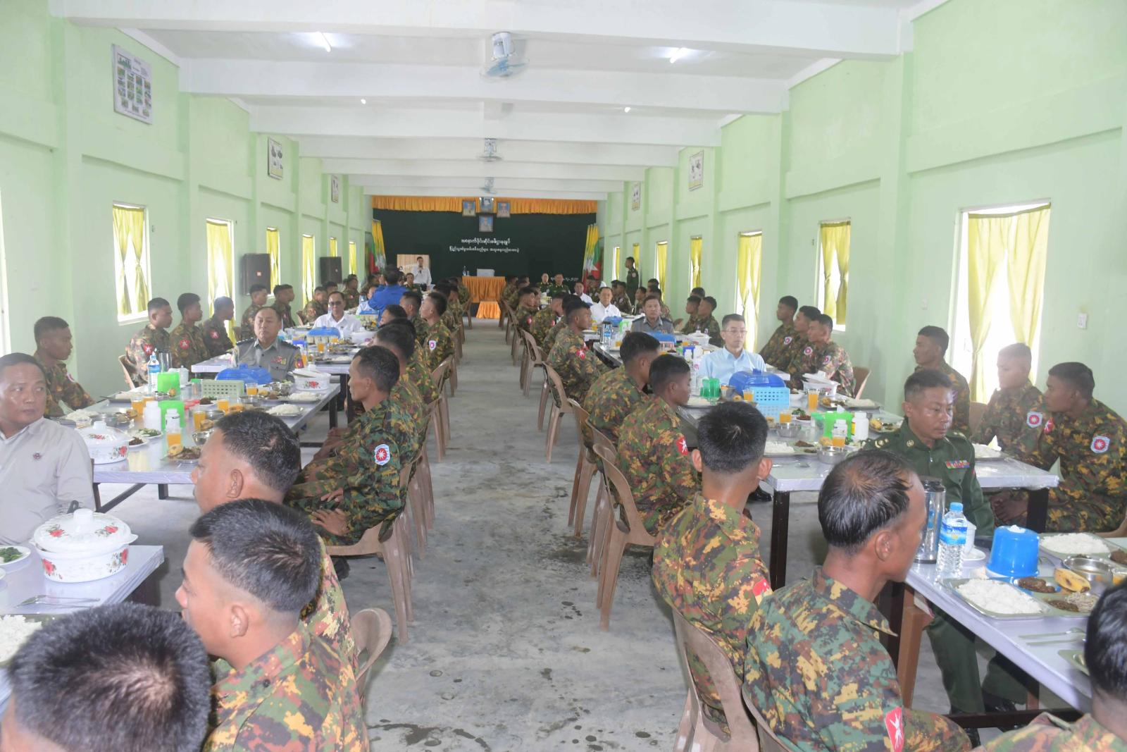 ရခိုင်ပြည်နယ် ဝန်ကြီးချုပ် ဦးထိန်လင်းသည် အနောက်ပိုင်းတိုင်းစစ်ဌာချုပ် တိုင်းမှူး ဗိုလ်ချုပ် ကျော်စွာဦး၊ စစ်တွေတပ်နယ်မှ တပ်မတော်အဆင့်မြင့်အရာရှိကြီးများ၊ ပြည်နယ်အစိုးရအဖွဲ့ဝင်များနှင့်အတူ ယမန်နေ့ နေ့လယ်ပိုင်းက နယ်မြေခံတပ်ရိပ်သာခန်းမ၌ ပြည်သူ့စစ်မှုထမ်းစစ်သည်များနှင့်အတူ အထူးနေ့လယ်စာစားပွဲသို့ တက်ရောက်ကြသည်။