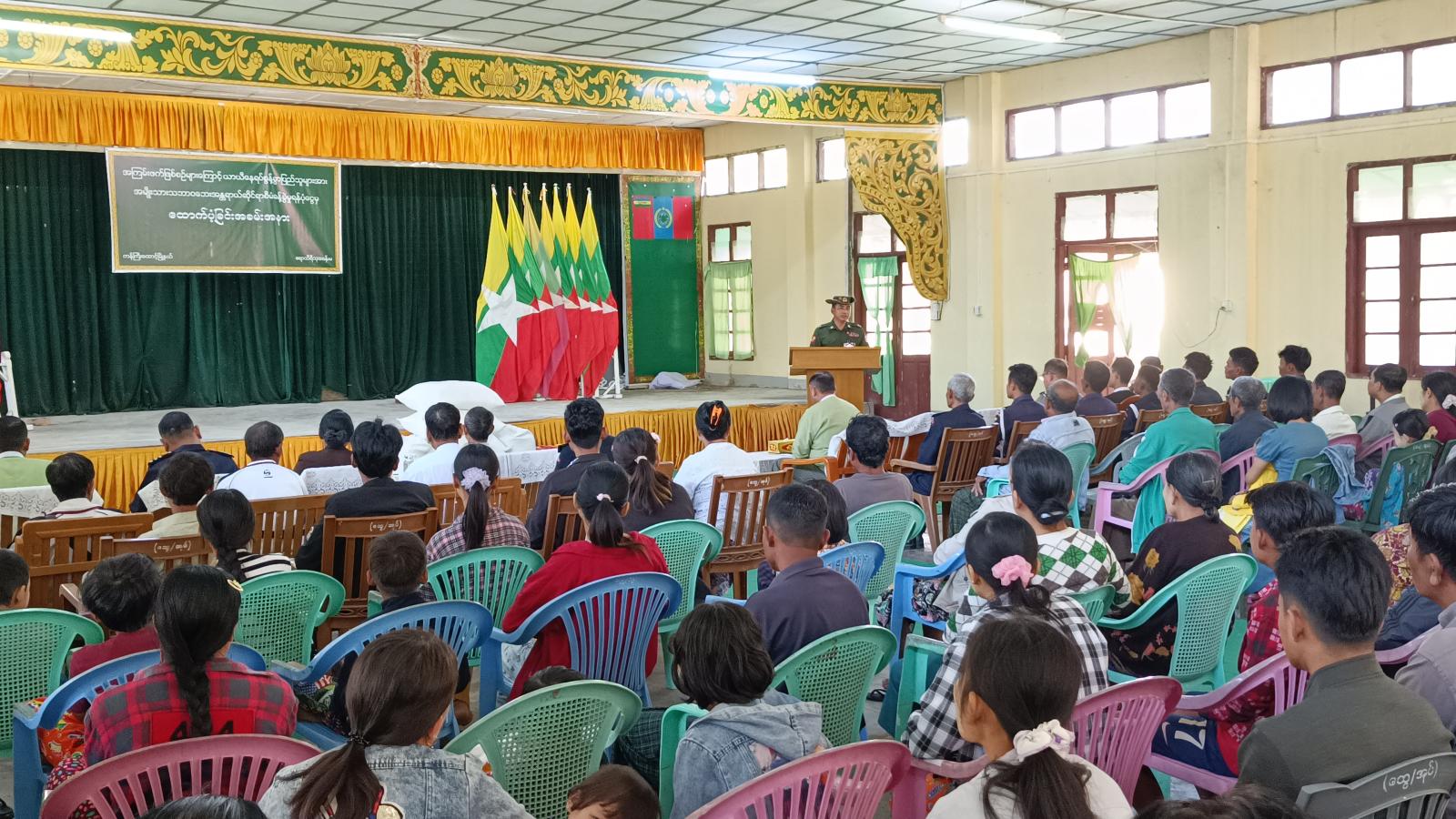 အခမ်းအနားတွင် မြို့နယ်စီမံခန့်ခွဲရေးနှင့်အုပ်ချုပ်ရေးကော်မတီဥက္ကဋ္ဌ ဦးမြင့်အောင်က အဖွင့်အမှာစကားပြောကြားခဲ့ပြီးအဖွဲ့ဝင် ဗိုလ်မှူးရဲနိုင်လွင်က ယာယီနေရပ်စွန့်ခွာ ပြည်သူများအား အမျိုးသားသဘာဝဘေးအန္တရာယ်ဆိုင်ရာစီမံခန့်ခွဲမှုရန်ပုံငွေမှ ထောက်ပံ့ခြင်းနှင့် ပတ်သက် ၍ အမှာစကားပြောကြားခဲ့သည်။