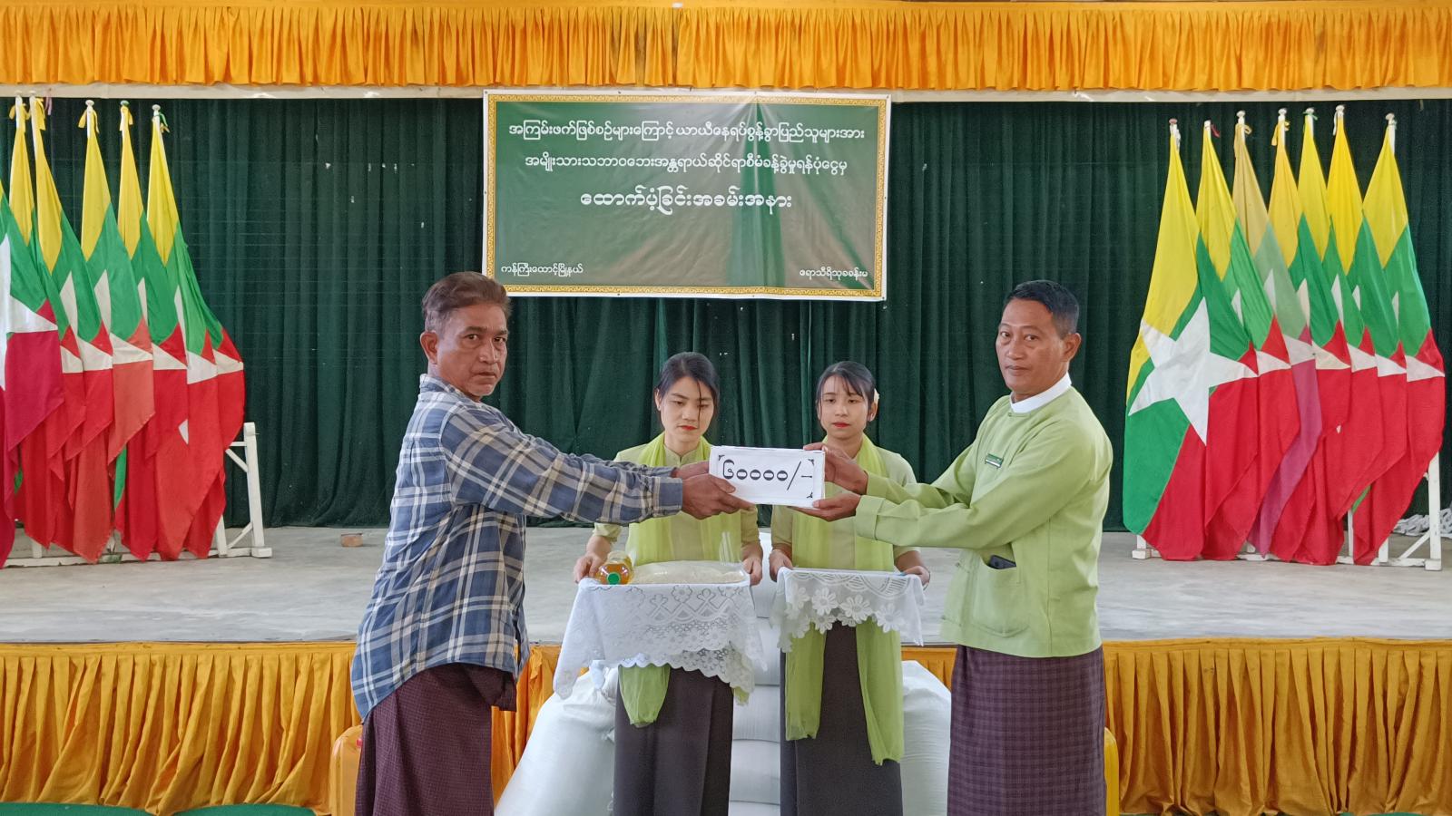 ထို့နောက် မြို့နယ်စီမံခန့်ခွဲရေးနှင့်အုပ်ချုပ်ရေးကော်မတီဥက္ကဋ္ဌနှင့်အဖွဲ့ဝင်များ၊ ဌာနဆိုင်ရာအကြီးအကဲများက ထောက်ပံ့ငွေနှင့် ဆန်၊ ဆီများအား ပေးအပ်ခဲ့ကြရာ သက်ဆိုင်ရာပြည်သူများက အသီးသီးလက်ခံရယူခဲ့ကြသည်။ ကန်ကြီးထောင့်မြို့နယ်၌ ရပ်ကွက်/ကျေးရွာအုပ်စုများရှိ ယာယီနေရပ်စွန့်ခွာပြည်သူ(၂၃၈)ဦးရှိရာ အဆိုပါပြည်သူများအား အမျိုးသားသဘာဝဘေးအန္တရာယ်ဆိုင်ရာ စီမံခန့်ခွဲမှုရန်ပုံငွေမှ တစ်ဦးလျှင်ငွေကျပ် (၂၀၀၀၀)ကျပ်နှုန်းဖြင့် ဇူလိုင်လမှ စက်တင်ဘာလအထိ သုံးလစာတစ်ဦးလျှင် ငွေကျပ် (၆၀၀၀၀)ကျပ်နှင့် အသက်(၁၈)နှစ်ပြည့်ပြီးသော ယာယီနေရပ်စွန့်ခွာပြည်သူ(၁၇၁)ဦးအား တစ်ဦးလျှင် ဆန်(၁)ပြည်၊ ဆီ(၅၀)ကျပ်သားနှုန်းဖြင့် စုစုပေါင်း ဆန်(၁၇၁)ပြည်နှင့် ဆီ(၈၅.၅)ပိဿာတို့အား ထောက်ပံ့ပေးအပ်ခဲ့ကြောင်း သိရသည်။