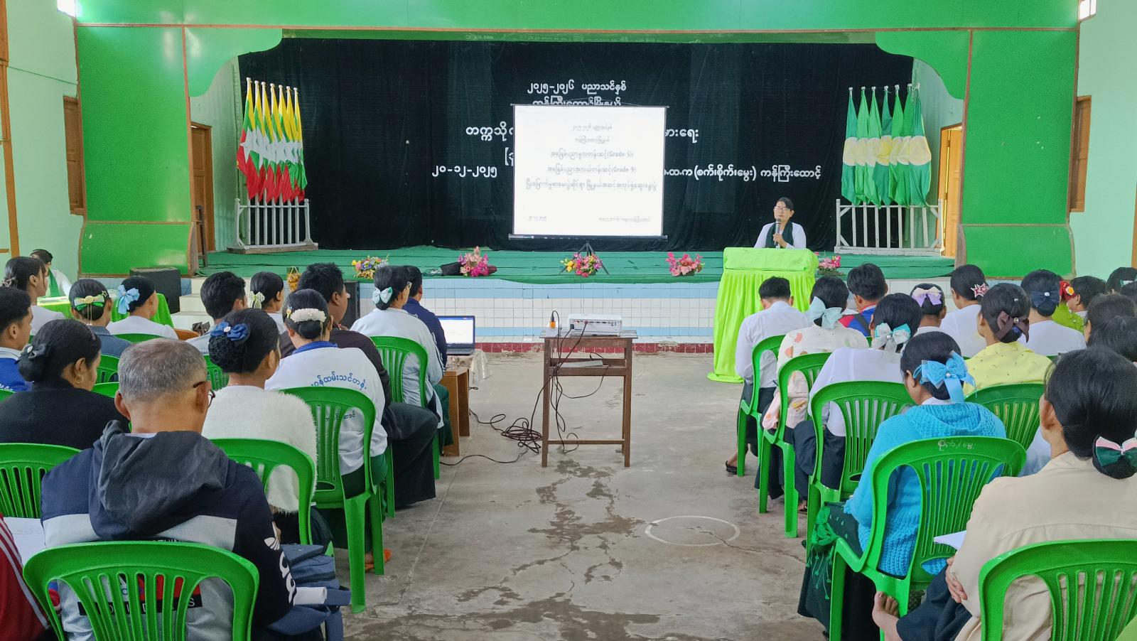 ထို့နောက် ခရိုင်အဆင့်တက်ရောက်ခဲ့ပြီးသော နည်းပြများက အခြေခံပညာမူလတန်းဆင့် (Grade-5)နှင့် အခြေခံပညာအလယ်တန်းဆင့် (Grade-9)ပြီးမြောက်မှုစာမေးပွဲနှင့် ပတ်သက်၍ ဘာသာရပ်အလိုက် ရှင်းလင်းဆွေးနွေးခဲ့ကြရာ မြို့နယ်အတွင်းရှိ အခြေခံပညာကျောင်းများမှ ကျောင်းအုပ်ဆရာကြီး၊ ဆရာမကြီးများနှင့် ဆရာ၊ ဆရာမများက တက်ရောက်ခဲ့ကြကြောင်းသိရသည်။