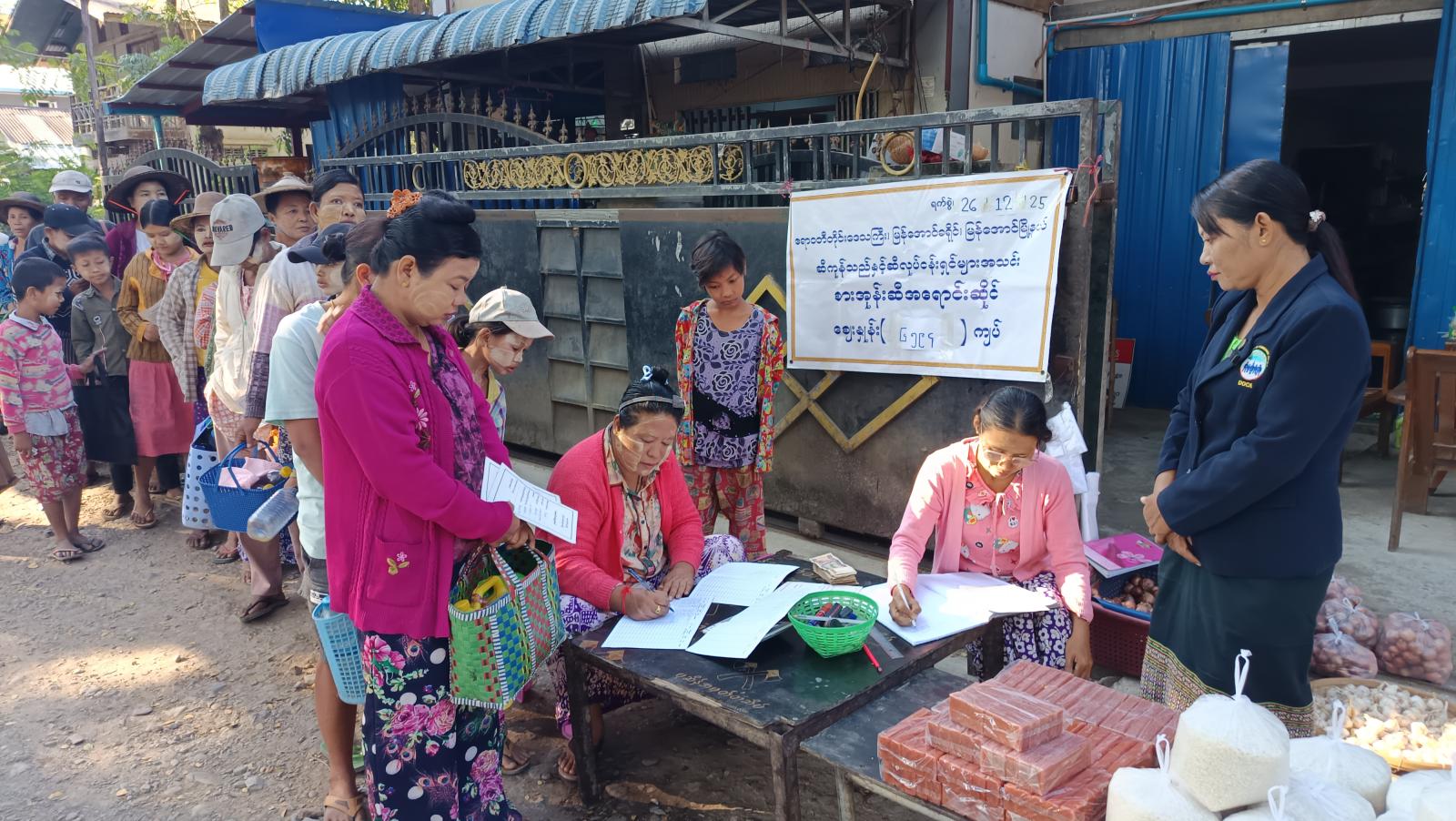 မြန်အောင်မြို့နယ် ဆီကုန်သည်နှင့် ဆီလုပ်ငန်းရှင်များအသင်းမှ စားအုန်းဆီတစ်ပိဿာ (၆၅၉၄) ကျပ်၊ ဆန်တစ်ပြည် (၂၀၀၀) ကျပ်နှုန်းဖြင့် ရောင်းချပေးမှုအား မြို့နယ်စီမံခန့်ခွဲရေးနှင့် အုပ်ချုပ်ရေးကော်မတီအဖွဲ့ဝင် ဦးမြင့်နိုင်၊ မြို့နယ်စားသုံးသူရေးရာဦးစီးဌာန ဝန်ထမ်းများ၊ ခရိုင်ဆီကုန်သည်နှင့် ဆီလုပ်ငန်းရှင်များ အသင်းဥက္ကဋ္ဌ ဦးမင်းဇော်ဦးနှင့် ဌာနဆိုင်ရာတာဝန်ရှိသူများနှင့် ရပ်မိရပ်ဖတို့က ကြည့်ရှုအားပေးကူညီဆောင်ရွက်ပေးခဲ့ကြသည်။