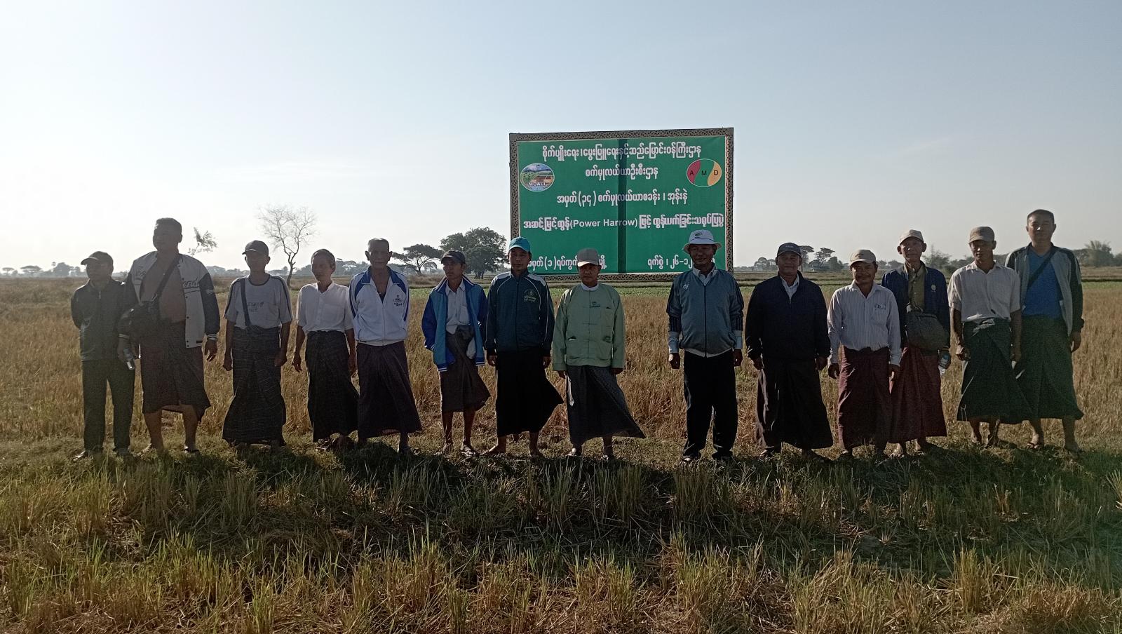 အဆိုပါ အခမ်းအနားသို့ မြို့နယ် စိုက်ပျိုးထုတ်လုပ်မှုတိုးတက်မြင့်မားရေး ကြီးကြပ်မှုကော်မတီဥက္ကဋ္ဌ၊ မြို့နယ်စီမံခန့်ခွဲရေးနှင့် အုပ်ချုပ်ရေးကော်မတီဥက္ကဋ္ဌ ဦးရဲထွန်းနှင့်အဖွဲ့ဝင်များ၊ မြို့နယ်အဆင့် ဌာနဆိုင်ရာတာဝန်ရှိသူများနှင့် ဒေသခံတောင်သူများ စုစုပေါင်း (၇၀)ဦးခန့် တက်ရောက်ခဲ့ကြပြီး အဆင့်မြင့်ထွန်(Power Harrow)ဖြင့်ထွန်ယက်သရုပ်ပြခြင်းကို ကြည့်ရှုအားပေးခဲ့ကြကြောင်း သိရသည်။