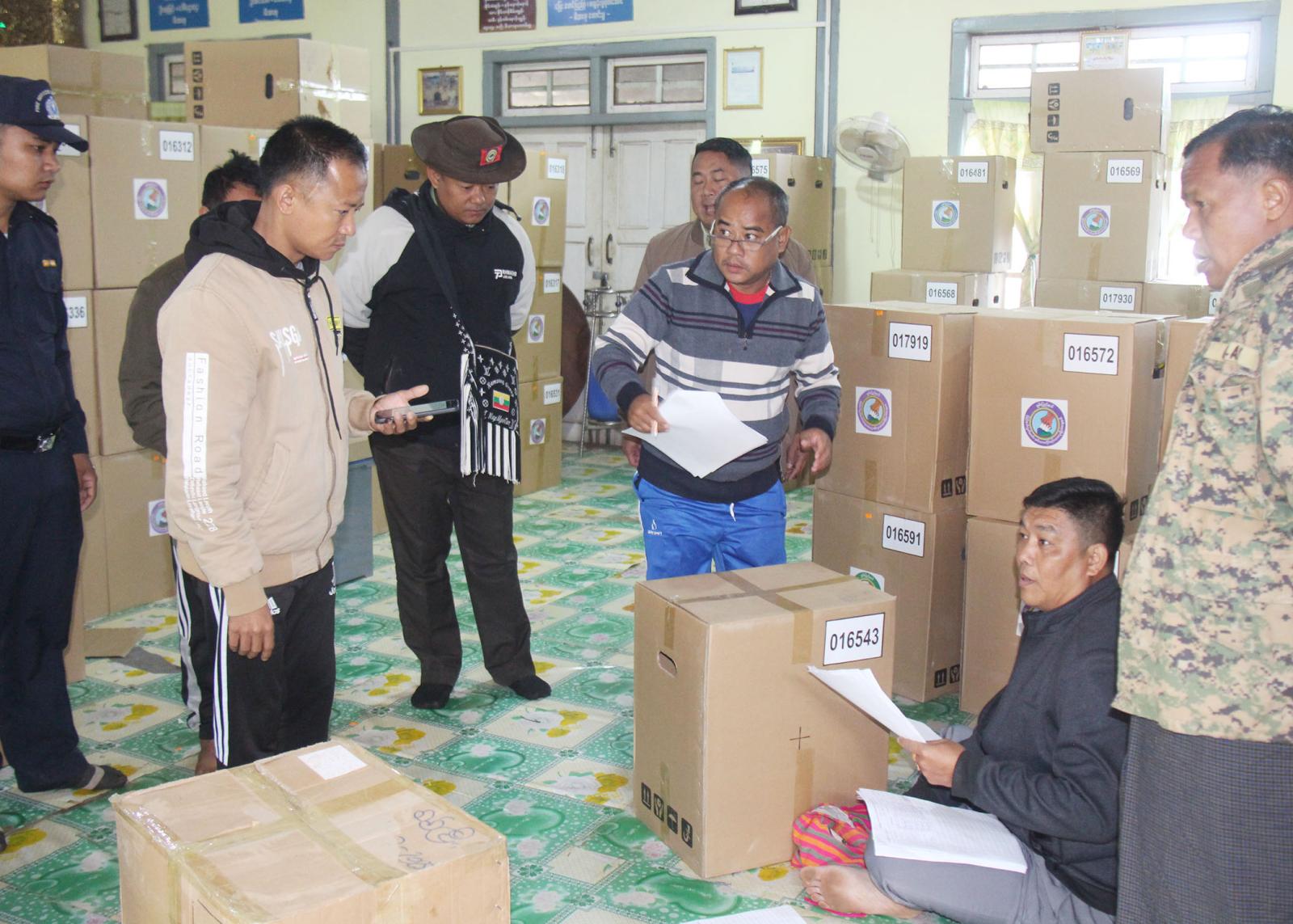 မြို့နယ်ရွေးကောက်ပွဲကော်မရှင်အဖွဲ့ခွဲဥက္ကဋ္ဌ ဦးအောင်ဆယ်၊ မြို့နယ်ရွေးကောက်ပွဲအရာရှိ ဒေါ်မျိုးမျိုးအောင်နှင့် မြို့နယ်ရွေးကောက်ပွဲကော်မရှင်အဖွဲ့ခွဲ အဖွဲ့ဝင်များက နမ့်စန်မြို့နယ်နှင့် ခိုလမ်မြို့အတွင်းရှိ မဲရုံများအတွက် ပြည်သူ့လွှတ်တော်၊ အမျိုးသားလွှတ်တော်၊ ပြည်နယ်လွှတ်တော်နှင့် သက်ဆိုင်ရာ တိုင်းရင်းသားလူမျိုးစုလွှတ်တော်တို့တွင် အသုံးပြုမည့် မြန်မာအီလက်ထရောနစ် မဲပေးစက်များ၊ အရံစက်များ၊ ဆက်စပ်ပစ္စည်းများနှင့် မဲရုံသုံးပစ္စည်းများကို သက်ဆိုင်ရာရပ်ကွက်နှင့် ကျေးရွာအုပ်စုရွေးကောက်ပွဲကော်မရှင်အဖွဲ့ခွဲဥက္ကဋ္ဌနှင့် အတွင်းရေးမှူးတို့ထံ စနစ်တကျထုတ်ပေးလျက်ရှိကြောင်း သိရသည်။