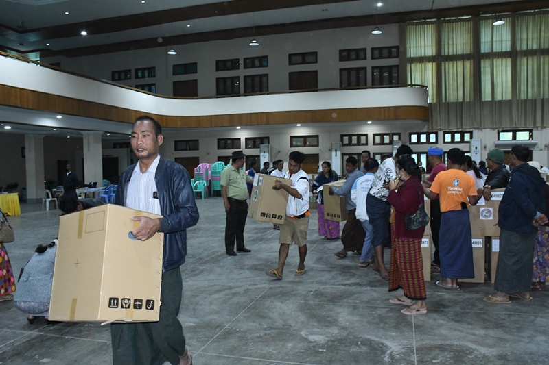 ကျောက်ဆည်မြို့၌ ပါတီစုံဒီမိုကရေစီအထွေထွေရွေးကောက်ပွဲ အောင်မြင်စွာကျင်းပနိုင်ရေး မြန်မာအီလက်ထရောနစ်မဲပေးစက် (MEVM) စက်များနှင့် ဆက်စပ်ပစ္စည်းများ ဖြန့်ဝေ