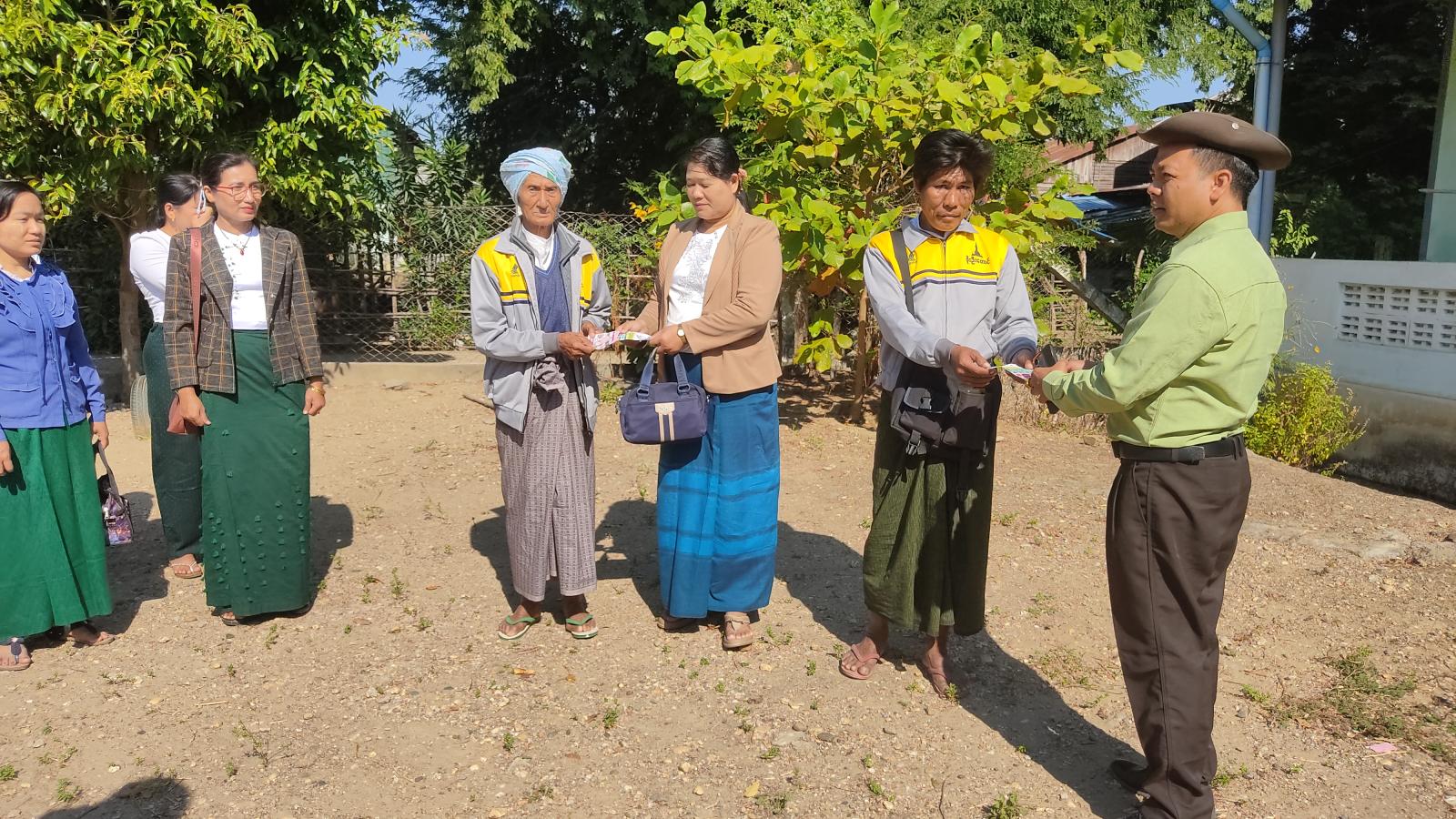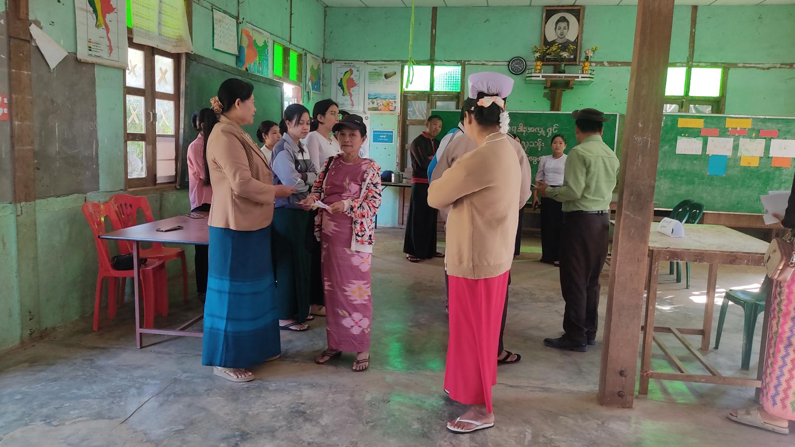 ထိုသို့ဖြန့်ဝေဆောင်ရွက်ခြင်းကို မြို့နယ်စီမံခန့်ခွဲရေးနှင့် အုပ်ချုပ်ရေးကော်မတီဥက္ကဋ္ဌ ဦးအောင်သူရဦးဆောင်၍ မြို့နယ်အထွေထွေအုပ်ချုပ်ရေးဦးစီးဌာနမှ ဝန်ထမ်းများ၊ မြို့နယ်ပြန်ကြားရေးနှင့် ပြည်သူ့ဆက်ဆံရေးဦးစီးဌာနမှ ဝန်ထမ်းများ၊ မြို့နယ်အဆင့်ဌာနဆိုင်ရာတာဝန်ရှိသူများနှင့် ကျေးရွာအုပ်ချုပ်ရေးမှူးများ ပါဝင်သောပူးပေါင်းအဖွဲ့က “ဒို့အတူတူမဲပေးကြမယ်”၊ “ရွေးကောက်ပွဲမှသည် ပိုမိုကောင်းမွန်သောအနာဂတ်ဆီသို့”၊ “ဒီမိုကရေစီကိုပြန်လည်ဖော်ဆောင်ဖို့အတွက် ရွေးကောက်ပွဲမှလွဲ၍ အခြားနည်းမရှိပါ”၊ “ပြည်သူများ လိုလားသည့် ဒီမိုကရေစီနိုင်ငံတော်ကို ရွေးကောက်ပွဲဖြင့်သာ ဖော်ဆောင်နိုင်ပါသည်”၊ “ဒီမိုကရေစီခိုင်မြဲဖို့မဲရုံသွားပြီးမဲပေးကြပါစို့”၊ “နိုင်ငံဖွံ့ဖြိုးတိုးတက်ဖို့ဦးဆောင်နိုင်သူ ရွေးချယ်ကြပါစို့”စသည့် အကြောင်းအရာများ ပါဝင်သည့် လက်ကမ်းစာစောင်များကို လူစည်ကားရာနေရာများ၊ ပြည်သူများထံ ဖြန့်ဝေပေးခဲ့ကြောင်း သိရသည်။