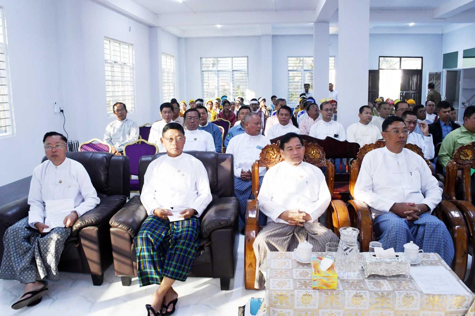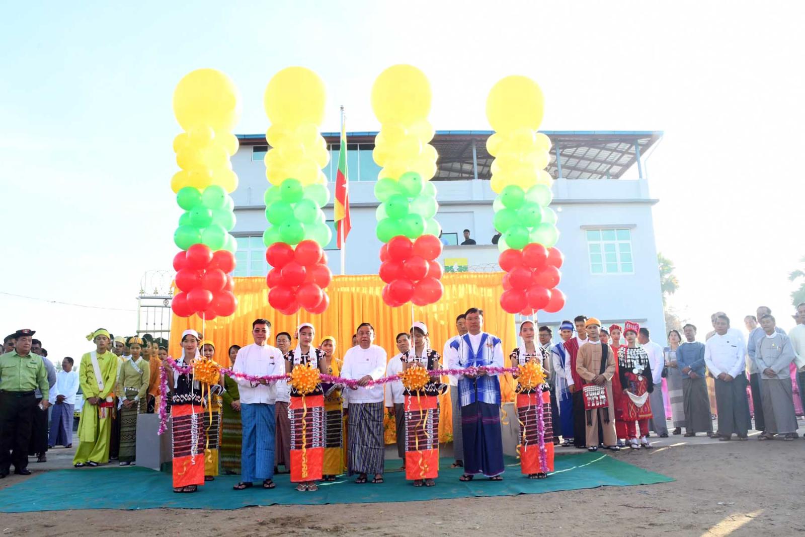 ဦးစွာတိုင်းဒေသကြီးဝန်ကြီးချုပ် ဦးမြတ်ကို၊ တိုင်းရင်းသားလူမျိုးများရေးရာဝန်ကြီးဌာန ဒုတိယဝန်ကြီး ဦးဇော်အေးမောင်၊ တိုင်းဒေသကြီးတိုင်းရင်းသားရေးရာဝန်ကြီး ဦးစောမာတင်လူသာတို့က တိုင်းရင်းသားရေးရာစင်တာအား ဖဲကြိုးဖြတ် ဖွင့်လှစ်ပေးပြီးတိုင်းဒေသကြီးဝန်ကြီးချုပ် ဦးမြတ်ကိုက စင်တာဆိုင်းဘုတ်အားစက်ခလုတ်နှိပ်၍ဖွင့်လှစ်ပေးကာ ဖိတ်ကြားထားသော ဧည့်သည်တော်များက ကမ္ဗည်းမော်ကွန်းအား အမွှေးနံ့သာရည်ပက်ဖျန်းပေးသည်။