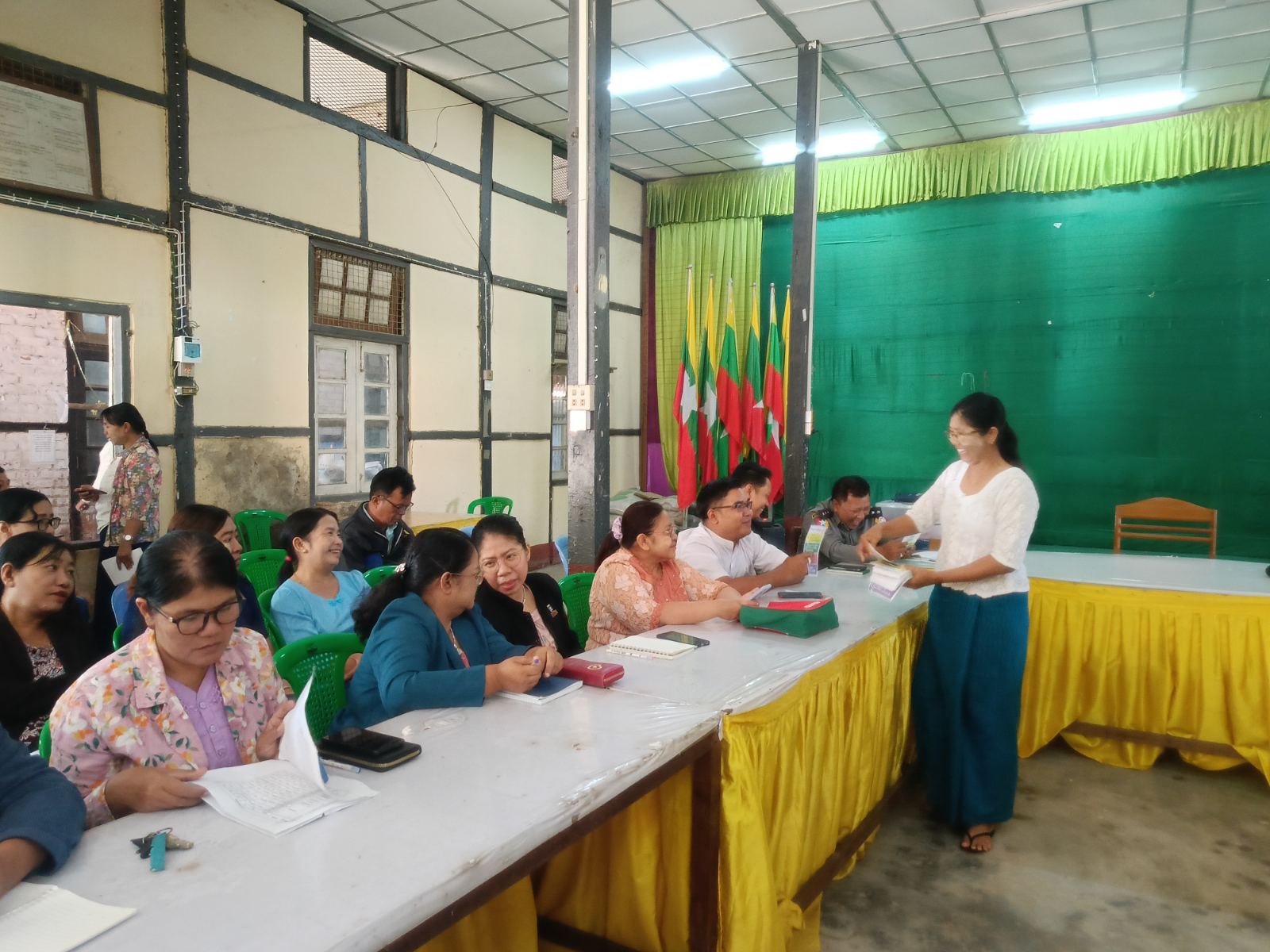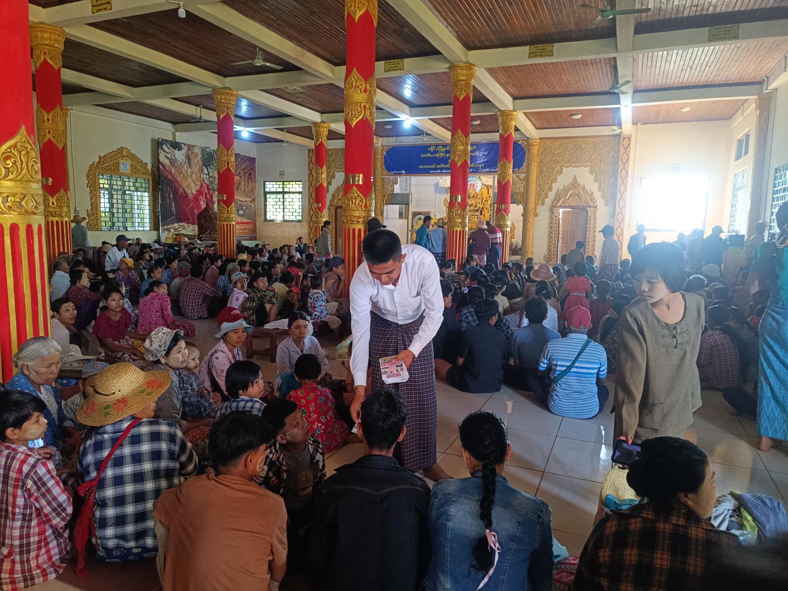 ပဲခူးတိုင်းဒေသကြီး၊ ညောင်လေးပင်ခရိုင်၊ ဒိုက်ဦးမြို့နယ်တွင် ၂၀၂၅ခုနှစ်၊ ဒီဇင်ဘာလ (၂၈) ရက်နေ့တွင်စတင်ကျင်းပမည့် ပါတီစုံအထွေထွေရွေးပွဲတွင် ပြည်သူအားလုံးပါဝင်နိုင်ရေးအတွက် “ဒို့အတူတူမဲပေးကြမယ်” တိုင်းရင်းသားဘာသာ စကား(၅)မျိုးပါသည့်လက်ကမ်းစာစောင်ကို ညောင်လေးပင်မြို့နယ် ပြန်ကြားရေးနှင့်ပြည်သူ့ဆက်ဆံရေးဦးစီးဌာနရုံးရှိ ဦးစီးအရာရှိနှင့် ဝန်ထမ်းများက ယနေ့နံနက်ပိုင်းက မြို့နယ်အထွေထွေအုပ်ချုပ်ရေးဦးစီးဌာနနှင့် သာသနာ့ဗိမ္မာန် ကျောင်းဝင်းအတွင်း၌ ညောင်လေးပင်မြို့နယ်အတွင်းသို့ ပြောင်းရွှေ့ရောက်ရှိလာကြသည့် နေရပ်စွန့်ခွာမိဘပြည်သူများ၏လက်ဝယ်အရောက်ဖြန့်ဝေဆောင်ရွက်ခဲ့ကြောင်း သိရသည်။