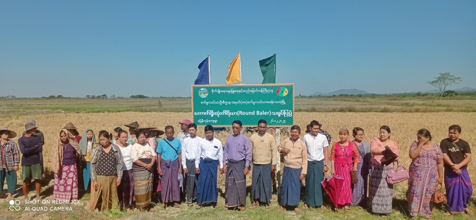 ကွင်းသရုပ်ပြသခြင်းကို မြေနီကုန်းကျေးရွာ ကွင်းအမှတ် (၆၄၆) ဦးပိုင်အမှတ် ၆/၁ တောင်သူ ဦးသာဆန်း၏ လယ်ယာမြေ၌ပြုလုပ်ရာ သထုံခရိုင်စက်မှုလယ်ယာဦးစီးဌာနမှုး ဦးအောင်ခန့်ကျော်၊ မြို့နယ်စီမံခန့်ခွဲရေးနှင့် အုပ်ချုပ်ရေးကော်မတီအဖွဲ့ဝင် ဦးမင်းတင်နွယ်၊ မြို့နယ်စက်မှုလယ်ယာဦးစီးဌာနမှူး ဦးရဲမြင့်၊ မြို့နယ်မွေးမြူရေးနှင့် ကုသရေးဦးစီးဌာနမှူး ဒေါက်တာခွန်မင်းမောင်နှင့် တာဝန်ရှိသူတို့က ကြည့်ရှုအားပေးကာ ကောက်ရိုးထုံးကိရိယာ (Round Baler) ဖြင့် ကောက်ရိုးထုံးရာ၌ ရရှိမည့် အကျိုးကျေးဇူးများကို ရှင်းလင်းပြောကြားပြီး လိုအပ်သည်တို့ကို ပေါင်းစပ်ညှိနှိုင်းဆောင်ရွက်ပေးခဲ့ကြသည်။