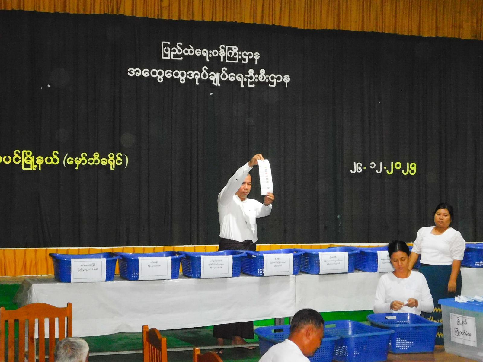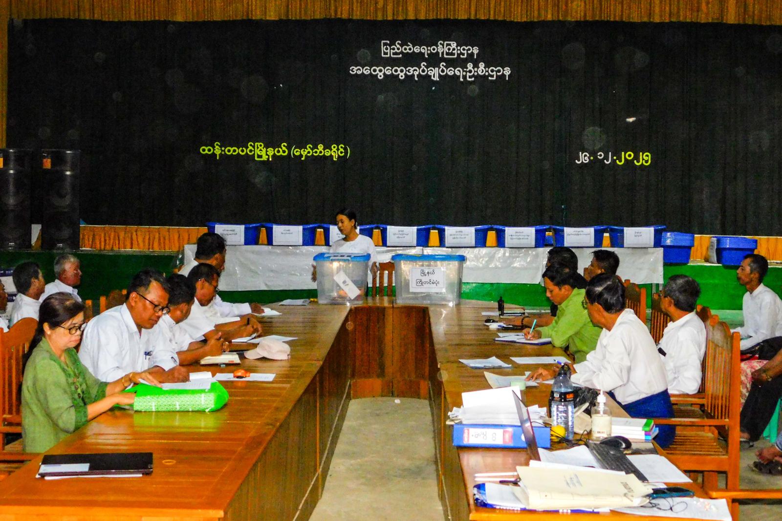 ပါတီစုံဒီမိုကရေစီအထွေထွေရွေးကောက်ပွဲအတွက် ပြည်တွင်းရှိမဲစာရင်းပါရှိသည့် သက်ဆိုင်ရာမြို့နယ် ပြင်ပရောက်ကြိုတင်မဲများဖွင့်ဖောက်ရေတွက်ခြင်းကိုဒီဇင်ဘာလ (၂၆) ရက်နေ့က ရန်ကုန်တိုင်းဒေသကြီး၊ မှော်ဘီခရိုင်၊ ထန်းတပင်မြို့နယ် အထွေထွေအုပ်ချုပ်ရေးဦးစီးဌာနရုံးတွင် ကျင်းပပြုလုပ်ခဲ့သည်။