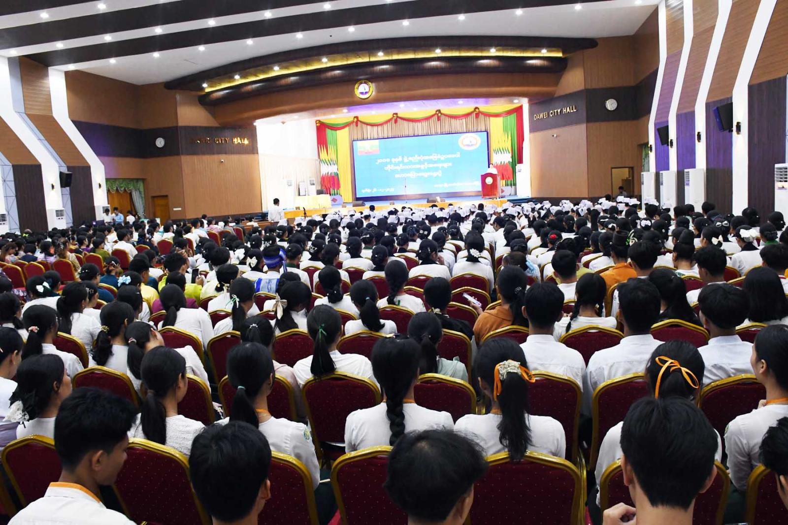 ၂၀၀၈ ဖွဲ့စည်းပုံအခြေခံဥပဒေပါ တိုင်းရင်းသားအခွင့်အရေးများ ဟောပြောဆွေးနွေးပွဲအခမ်းအနားကို ဒီဇင်ဘာ ၂၆ ရက်က တနင်္သာရီတိုင်းဒေသကြီး၊ ထားဝယ်မြို့၊ မြို့တော်ခန်းမ၌ကျင်းပရာ ဦးစွာတိုင်းရင်းသားများက "စည်းလုံးခြင်းအတွက် သီချင်းတစ်ပုဒ်" သီချင်းဖြင့် ဖျော်ဖြေသည်။