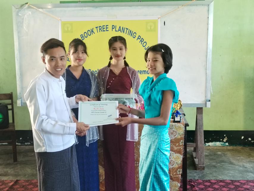 အခမ်းအနားတွင် စာပေသစ်ပင်စိုက်ပျိုးခြင်း စီမံချက်တာ၀န်ခံ ဆရာမ ဒေါ်သက်ထားဆွေမှ သင်တန်းဆင်းအမှာစကား ပြောကြားကာ သင်တန်းတာ၀န်ခံဆရာဦးအောင်ကို၀င်းမှ သင်တန်း၏ ရည်ရွယ်ချက်များ ပြောကြားခဲ့သည်။