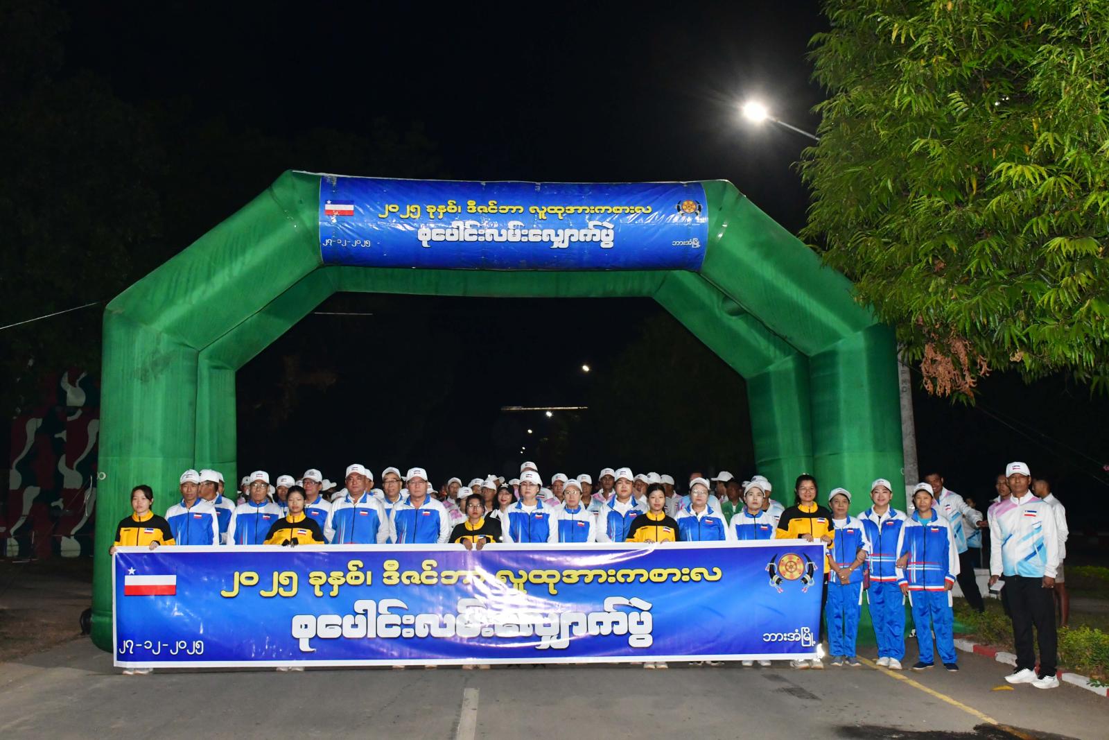 ကိုယ်လက်လှုပ်ရှားအားကစား ကျန်းမာရေးလေ့ကျင့်ခန်းများ ဆောင်ရွက်ခြင်းဖြင့် တစ်ဦးတစ်ယောက်ချင်းစီမှသည် တစ်မျိုးသားလုံးကျန်းမာကြံ့ခိုင်လာစေရေး ၂၀၂၅ ခုနှစ် ဒီဇင်ဘာလူထုအားကစားလ စုပေါင်းလူထုလမ်းလျှောက်ပွဲ စတုတ္ထပတ် (နောက်ဆုံးပတ်) ကို ယနေ့နံနက် ၅ နာရီခွဲက ဘားအံမြို့၊ အမှတ် (၄) ရပ်ကွက်၊ ဝန်ကြီးများအိမ်ရာရှေ့တွင် စုရပ်ထား၍ ကျင်းပရာ ပါဝင်ဆင်နွှဲကြသူများဖြင့် အထူးစည်ကားခဲ့သည်။