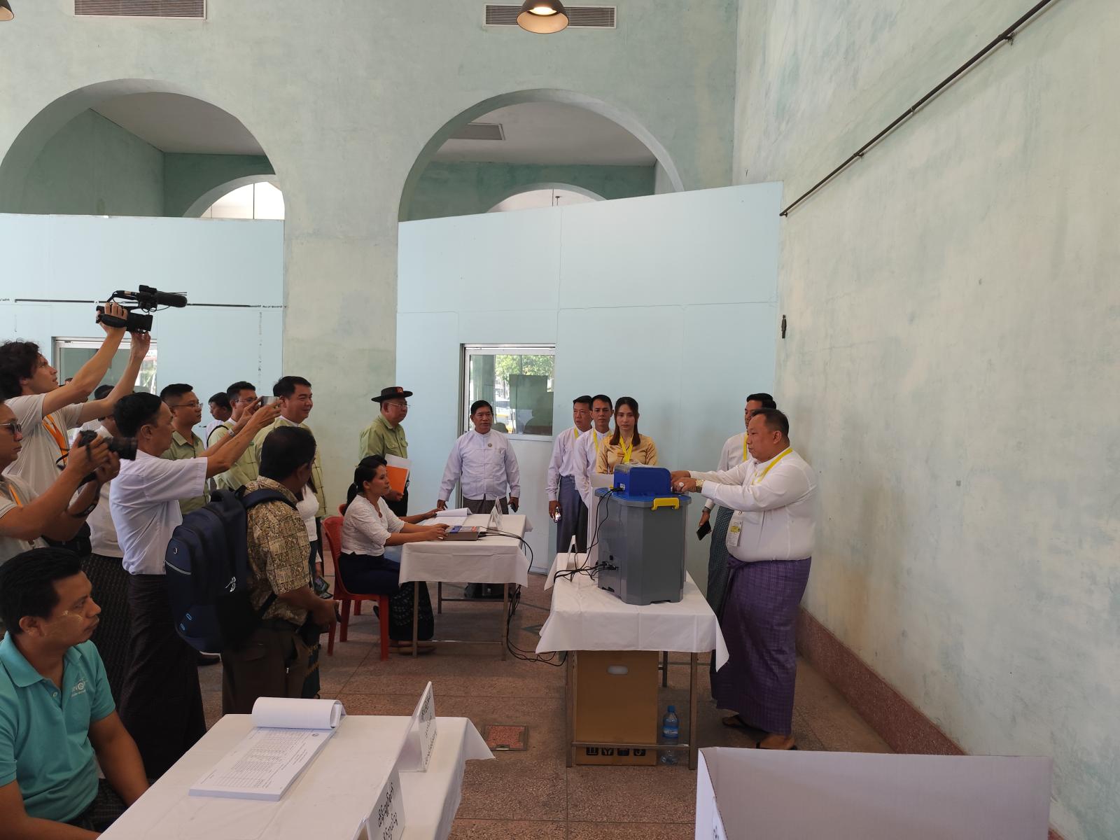 ထိုသို့စစ်ဆေးရာတွင် ခရိုင်စီမံခန့်ခွဲရေးနှင့်အုပ်ချုပ်ရေးကော်မတီဥက္ကဋ္ဌ ဦးဥက္ကာနှင့်တာဝန်ရှိသူများက မဲရုံပြင်ဆင်ထားရှိမှုနှင့်မြန်မာအီလက်ထရောနစ်မဲပေးစက်တပ်ဆင်ထားရှိမှုများကို ရှင်းလင်းတင်ပြရာ လမ်းပန်းဆက်သွယ်ရေးဝန်ကြီးက ကြည့်ရှုစစ်ဆေး စမ်းသပ်ခဲ့ပြီး လိုအပ်သည်များကို ပေါင်းစပ်ဆောင်ရွက်သည်။
